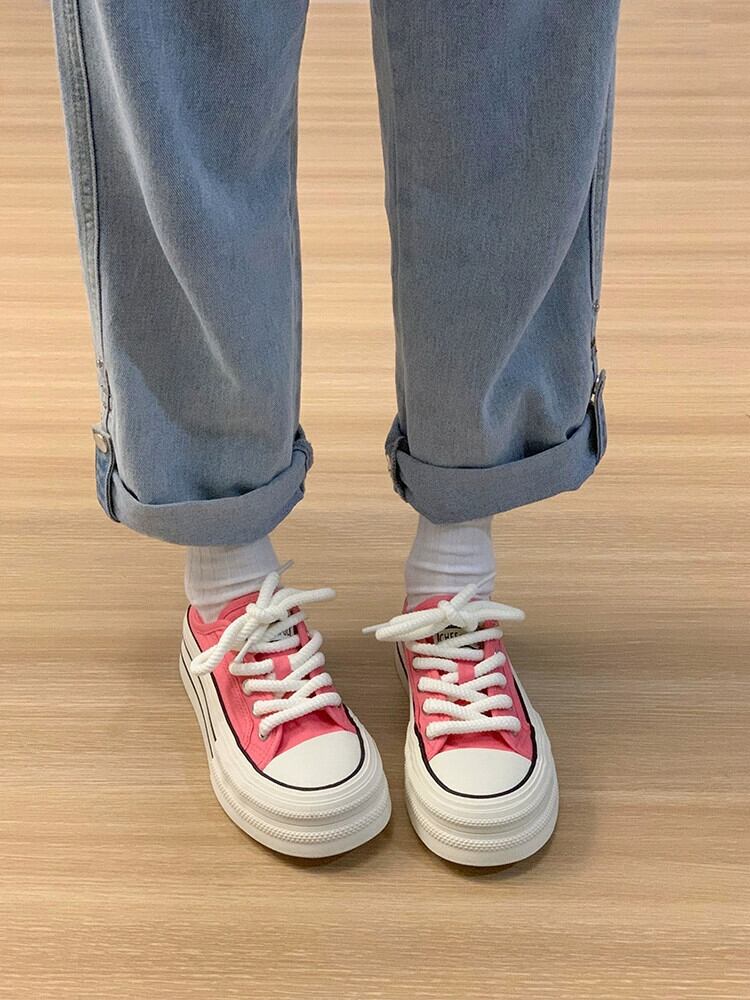 女性のカジュアルシューズ 2023 夏の新ストリートスタイルファッション学生厚底ノンスリップ comtable 軽量キャンバスシューズ潮 靴 サマー 夏物 jxjxf12010308664