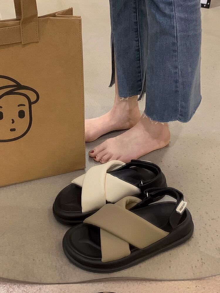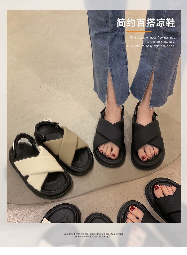 サマーサンダル女性の 2023 新しいスーパーオールマッチベルクロ学生厚底滑り止め快適カジュアルビーチシューズ 靴 夏物 jxjxf89062445416