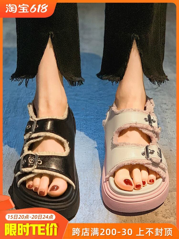 ネットレッドサンダル女性の 2023 夏の新ファッションオールマッチ eign スタイルベルトバックル学生厚底ノンスリップビーチシューズ 靴 サマー 夏物 ハーネス jxjxf46472286524