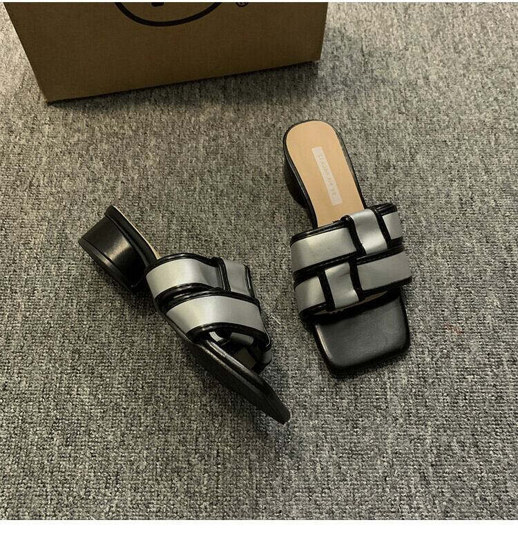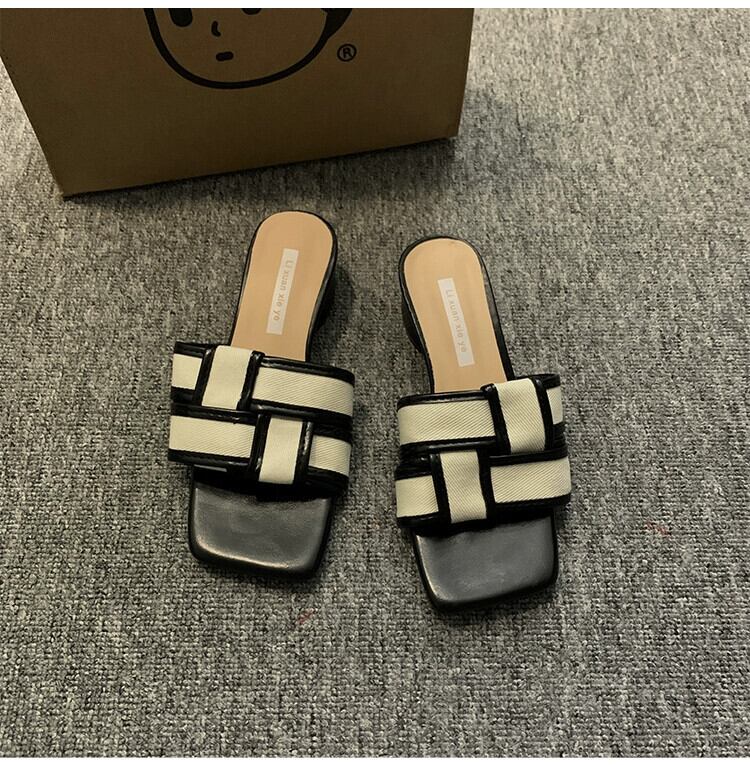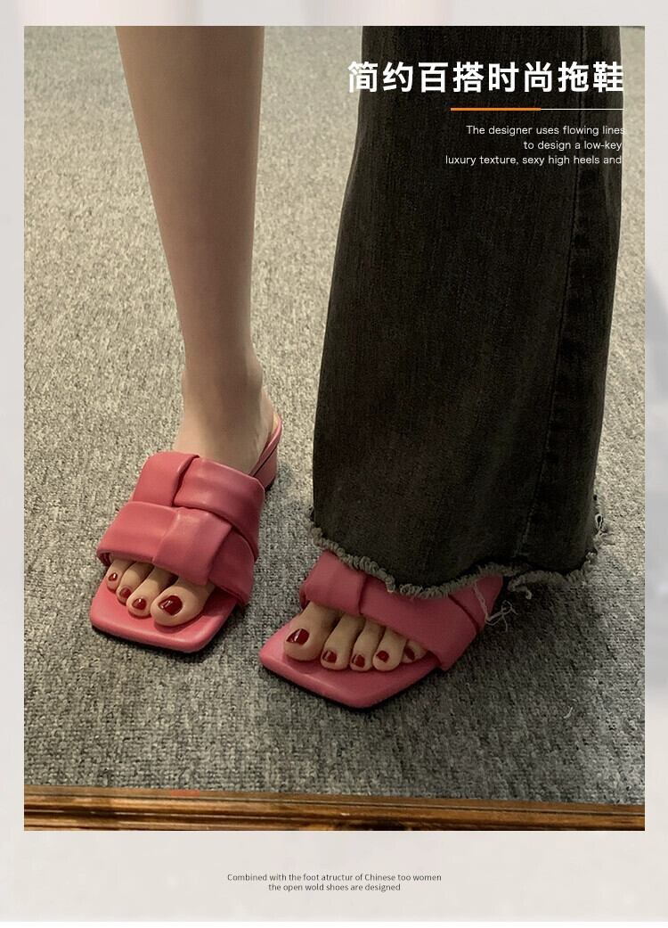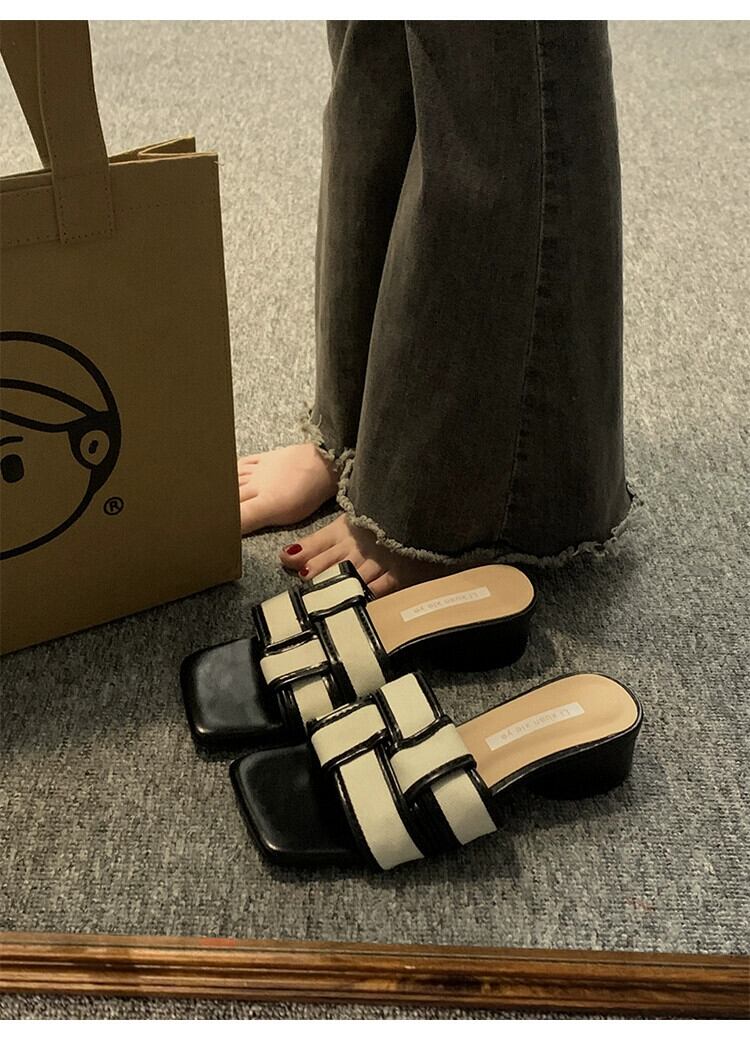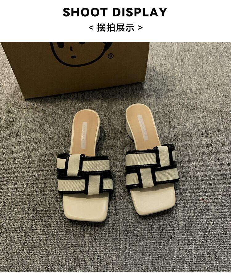 インターネット有名人スリッパ女性の上着 2023 夏の新ファッションレトロな eign スタイル編組厚いヒール滑り止めビーチサンダル ミュール 靴 シューズ サマー 夏物 jxjxf80206366606