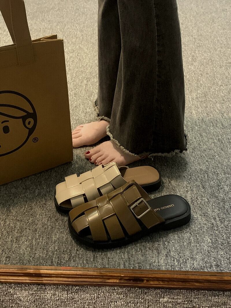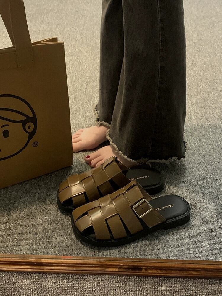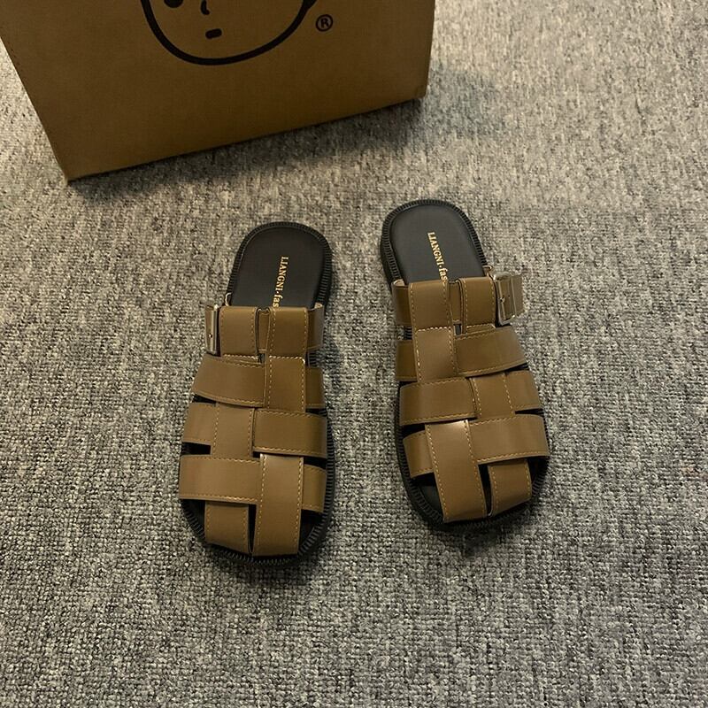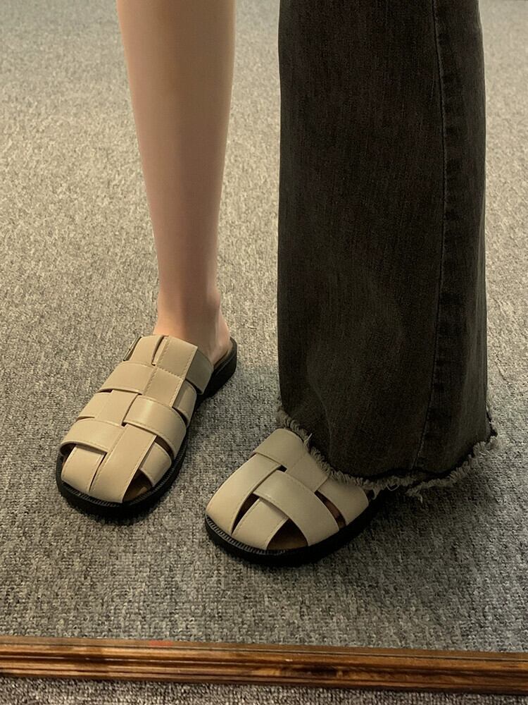 包頭ハーフスリッパ女性の 2023 夏の新ファッションオールマッチレトロ織りフラットノンスリップ eign スタイルサンダルとスリッパ ミュール 靴 シューズ サマー 夏物 jxjxf89210293452