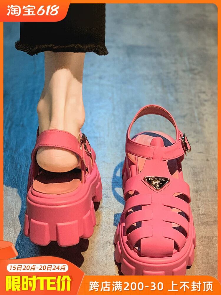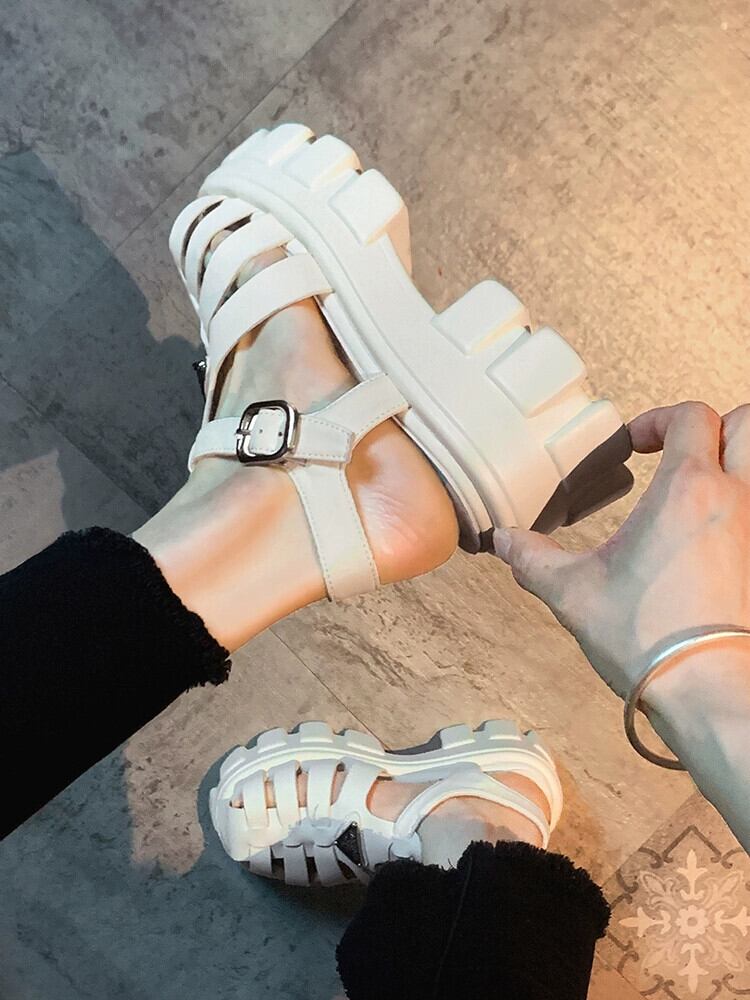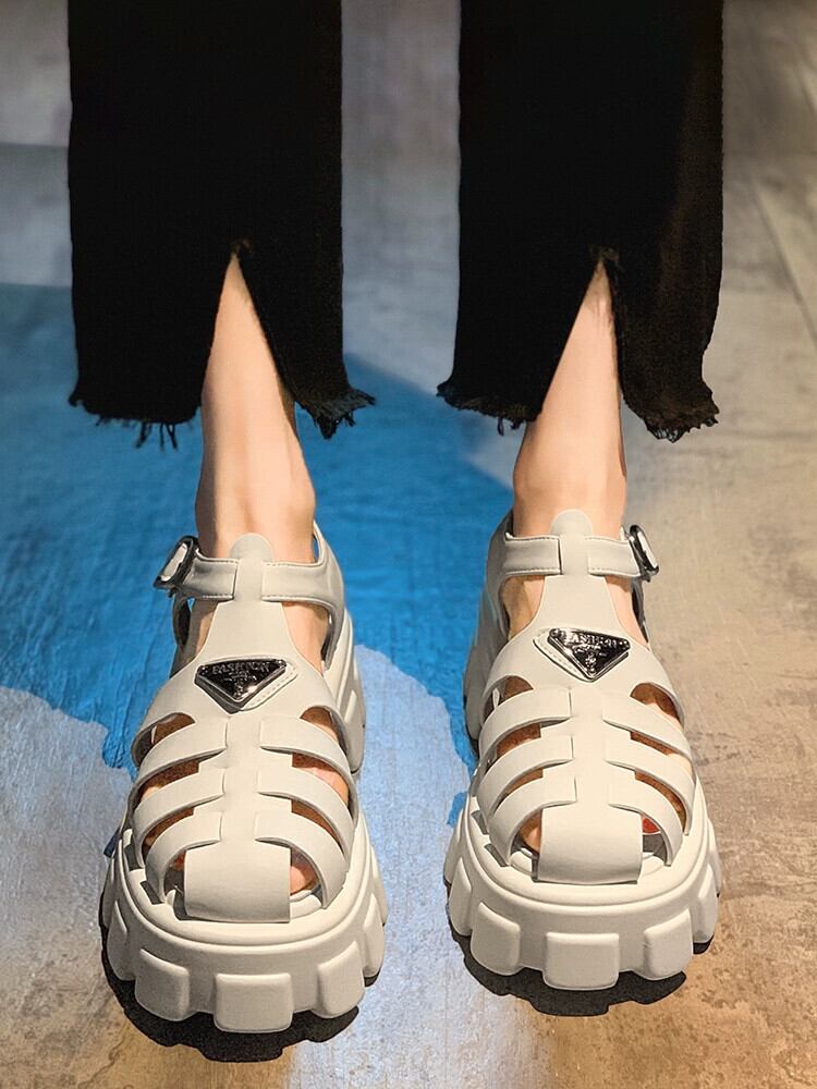 ローマサンダル夏 2023 フレンチ中空レトロ通気性厚いヒールビーチシューズ 靴 サマー 夏物 jxjxf22118332261