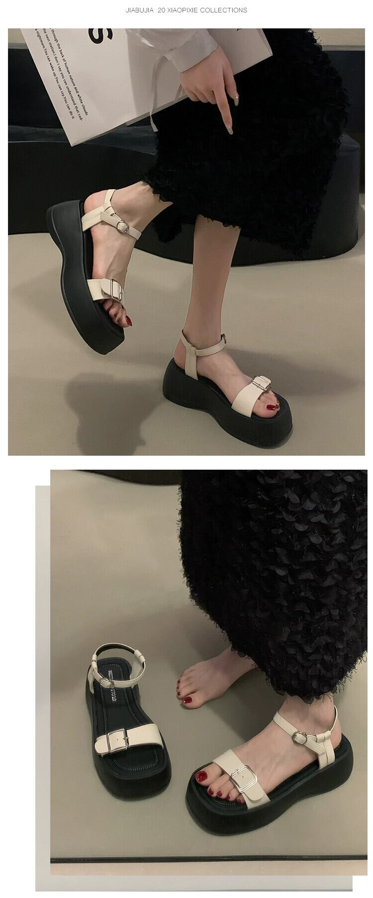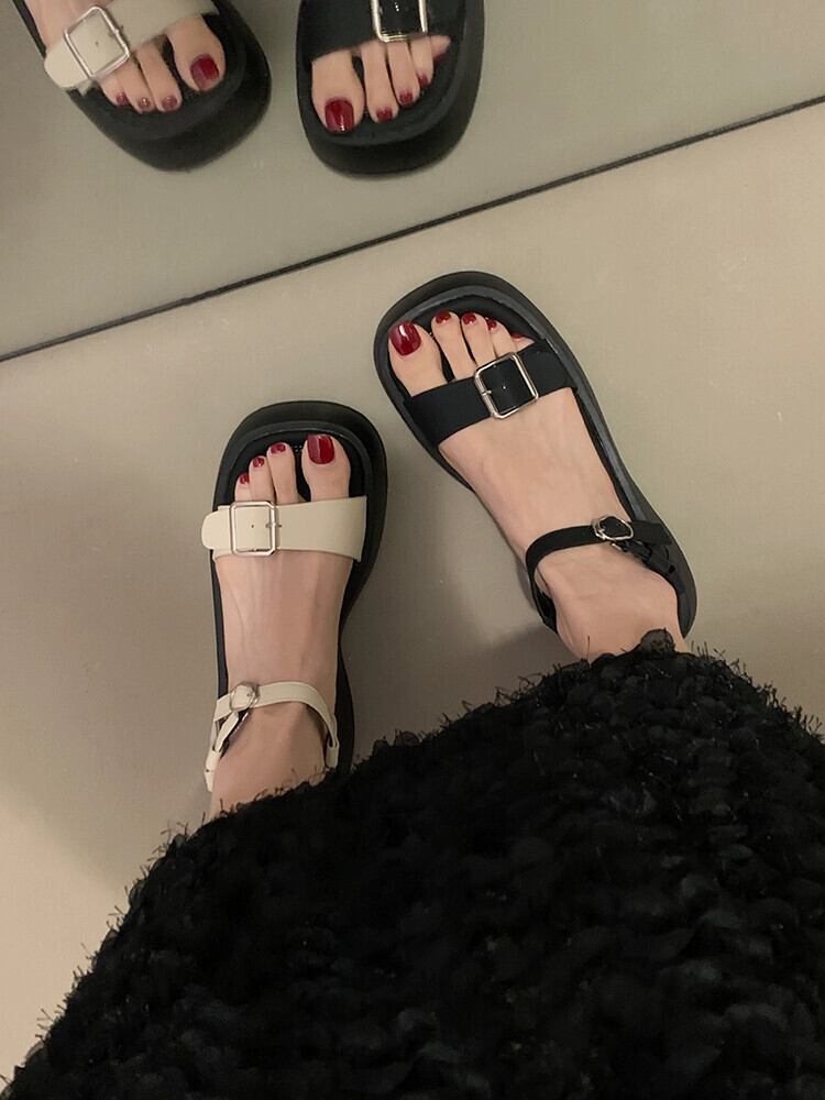 サンダル女性の 2023 新しい夏のファッションオールマッチレトロ気質ベルトバックル厚底一言ベルトビーチシューズ潮 靴 サマー 夏物 ハーネス jxjxf14319614052