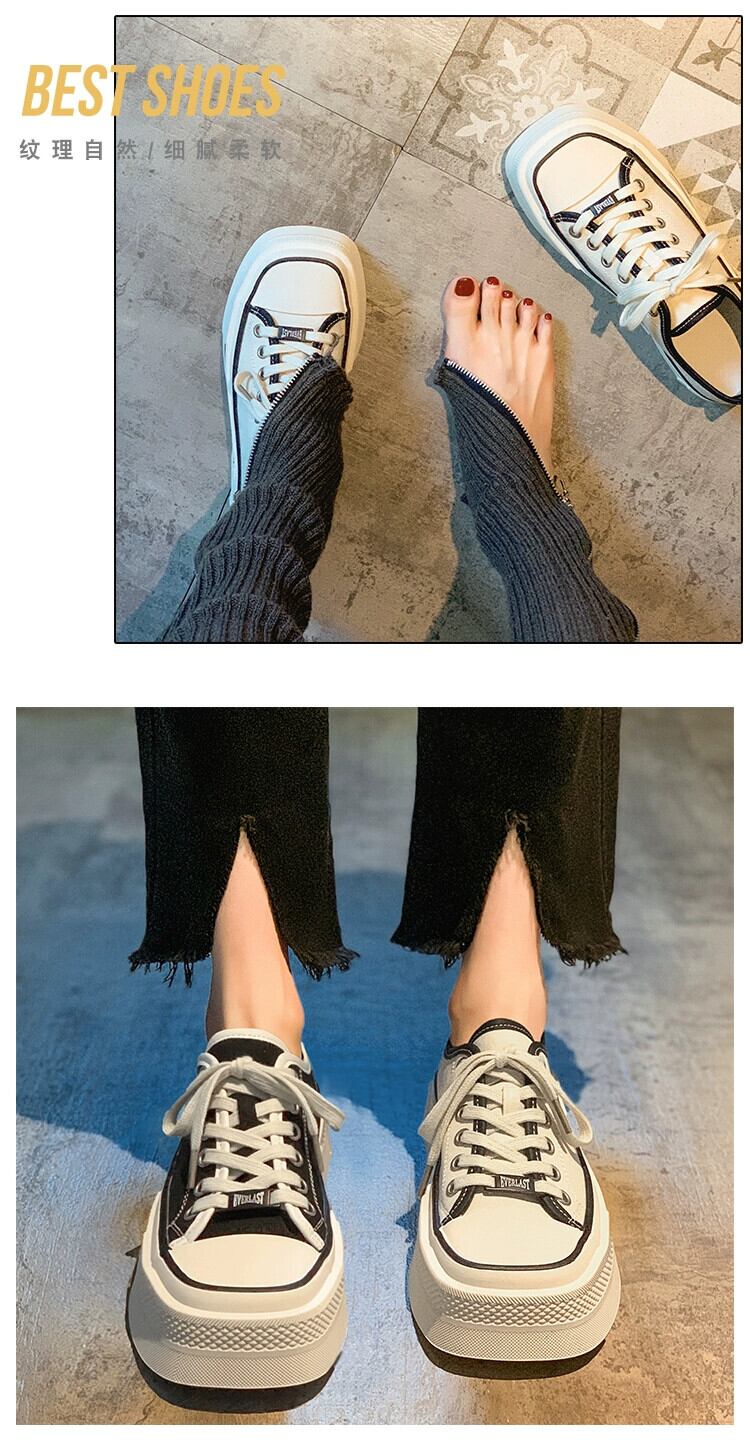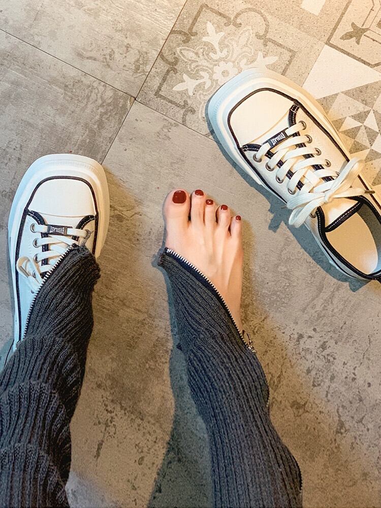 スクエアトゥキャンバスシューズレディース2023春秋新作ファッションオールマッチレトロ学生カジュアル滑り止め厚底カジュアルスニーカー 靴 スプリング 春物 オータム 秋物 スクウェア jxjxf27328072478