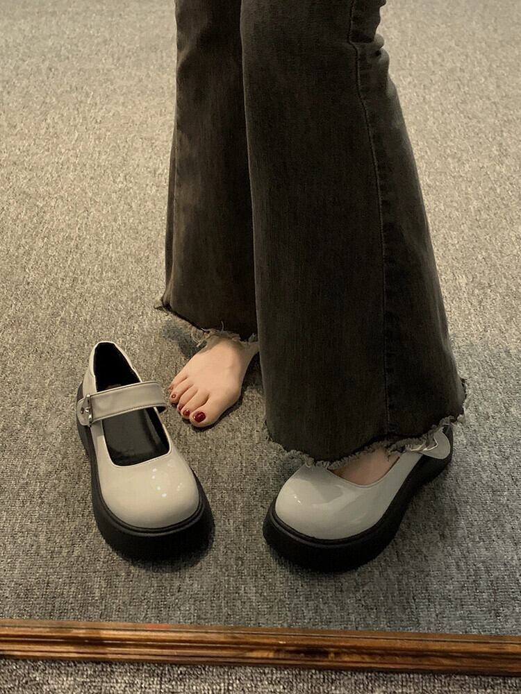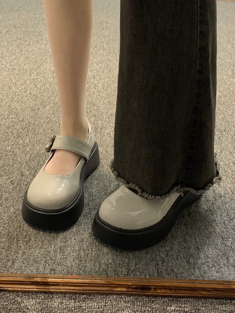 ese シングルシューズの女性の 2023 夏の新ファッションレトロオールマッチフレンチシンプルな厚底メリージェーンレザーシューズ 靴 サマー 夏物 jxjxf86753258874