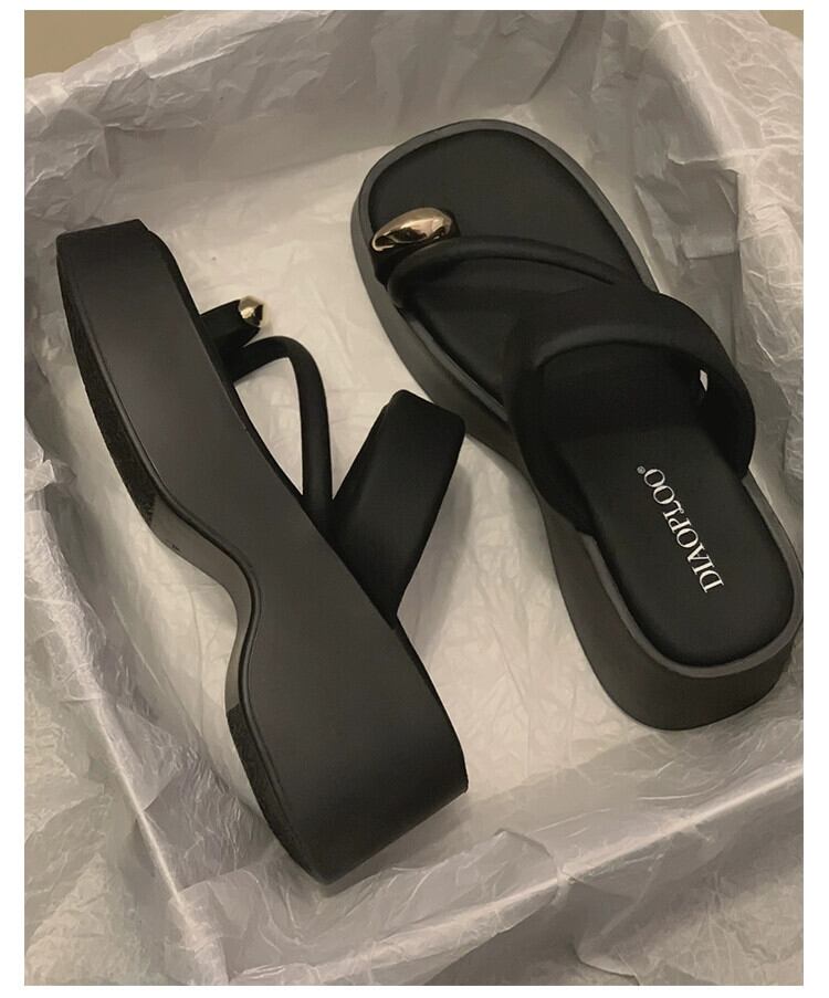 2023年の夏に出かけるつま先スリッパの女性の新しいファッションシンプルなスタイルのメタル厚底カジュアルサンダルとスリッパのセット ミュール 靴 シューズ サマー 夏物 jxjxf17723708489