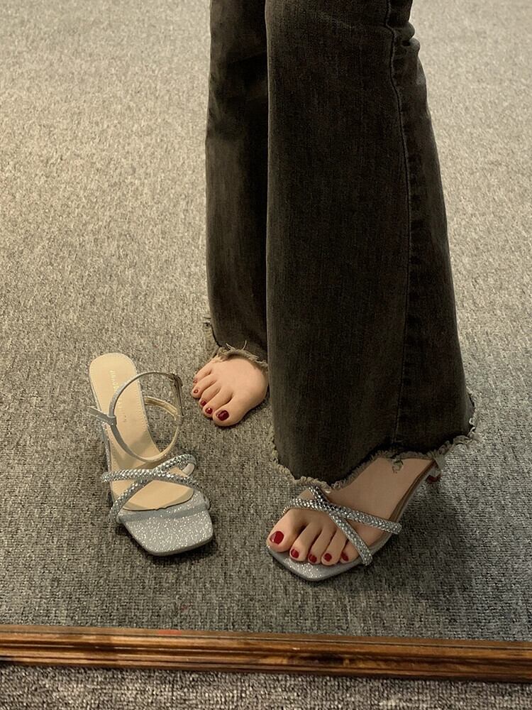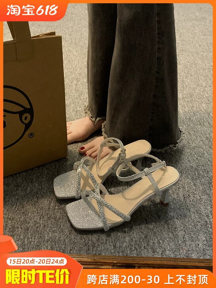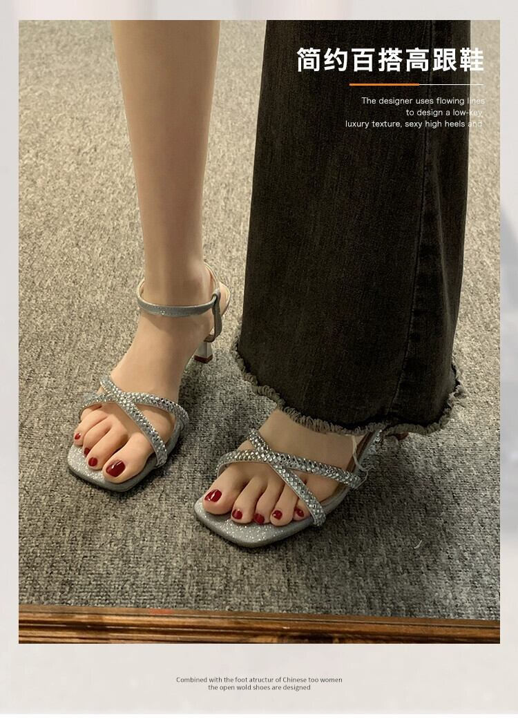 インターネット有名人サンダル女性の 2023 夏の新しいファッション eign スタイルのラインストーンとスカートフェアリースタイルハイヒール潮 靴 シューズ サマー 夏物 jxjxf16203805968