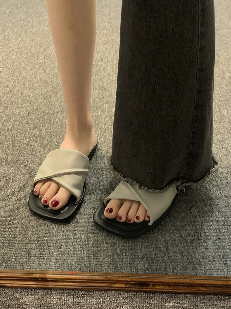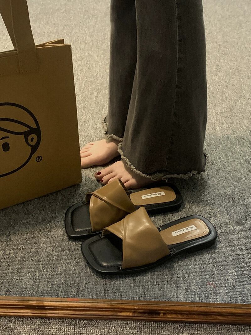 女性のサンダルとスリッパアウターウェア 2023 夏の新ファッションオールマッチレトロ comtable フラット滑り止めビーチサンダル ミュール 靴 シューズ サマー 夏物 jxjxf90029006837
