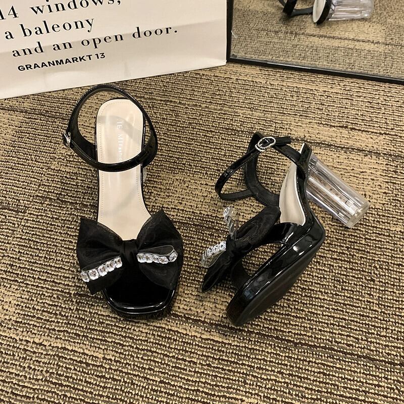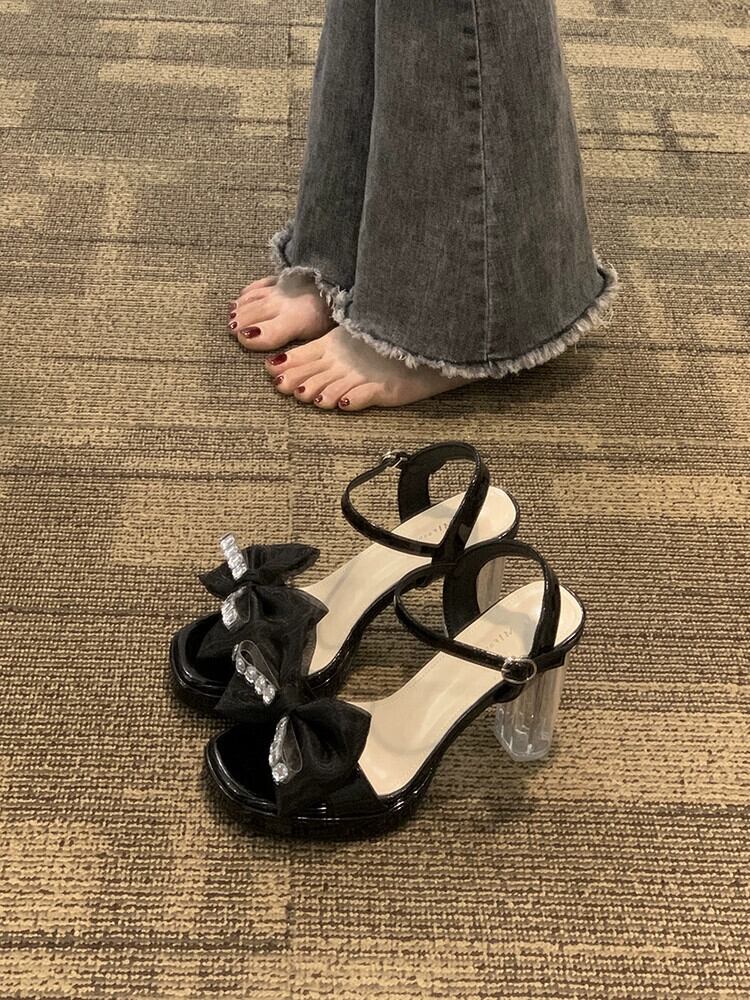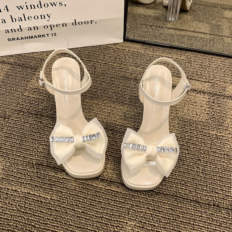 サンダル女性の夏の 2023 新しいファッションオールマッチレトロラインストーンリボンフェアリースタイルハイヒール 靴 シューズ サマー 夏物 jxjxf66408851678