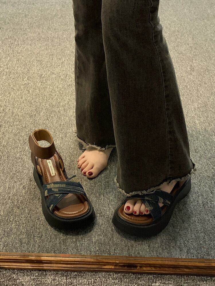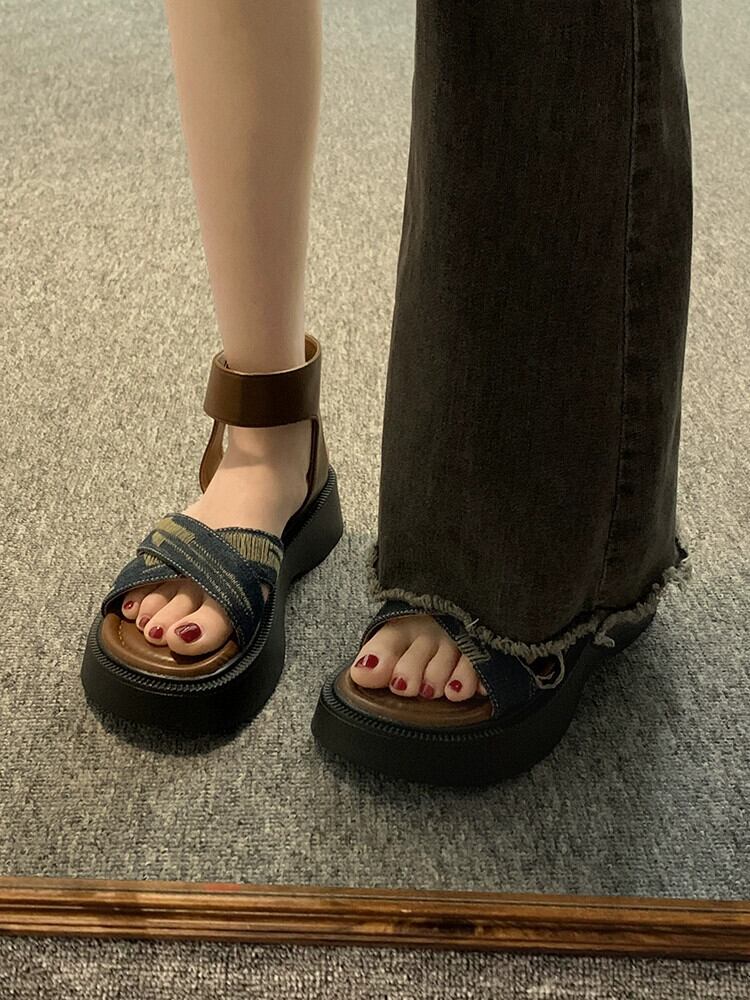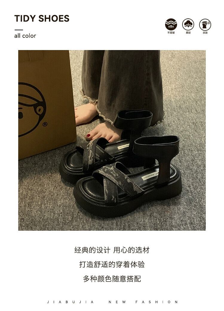 ローマン サンダル レディース 2023 夏多用途レトロ ベルクロ Comtable 厚底ウエスタン スタイル ビーチ シューズ 靴 サマー 夏物 jxjxf49867354436