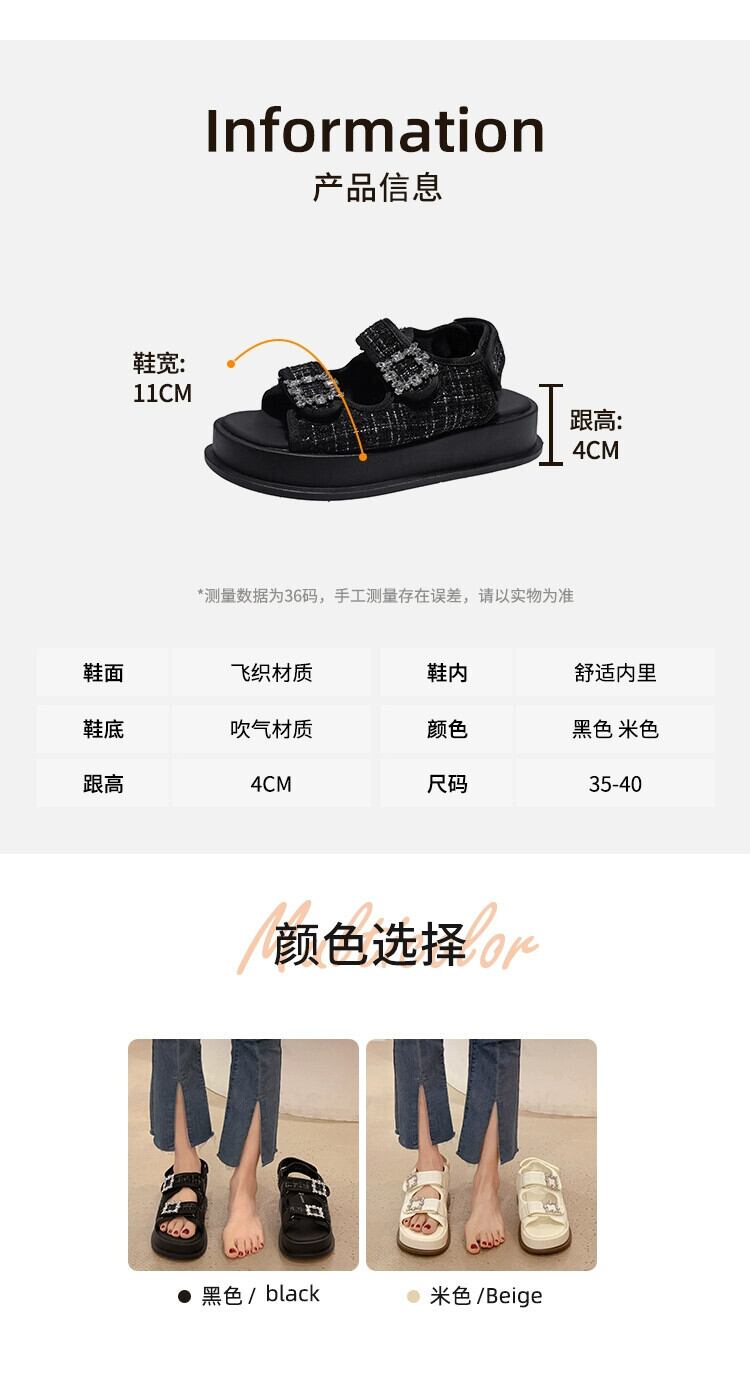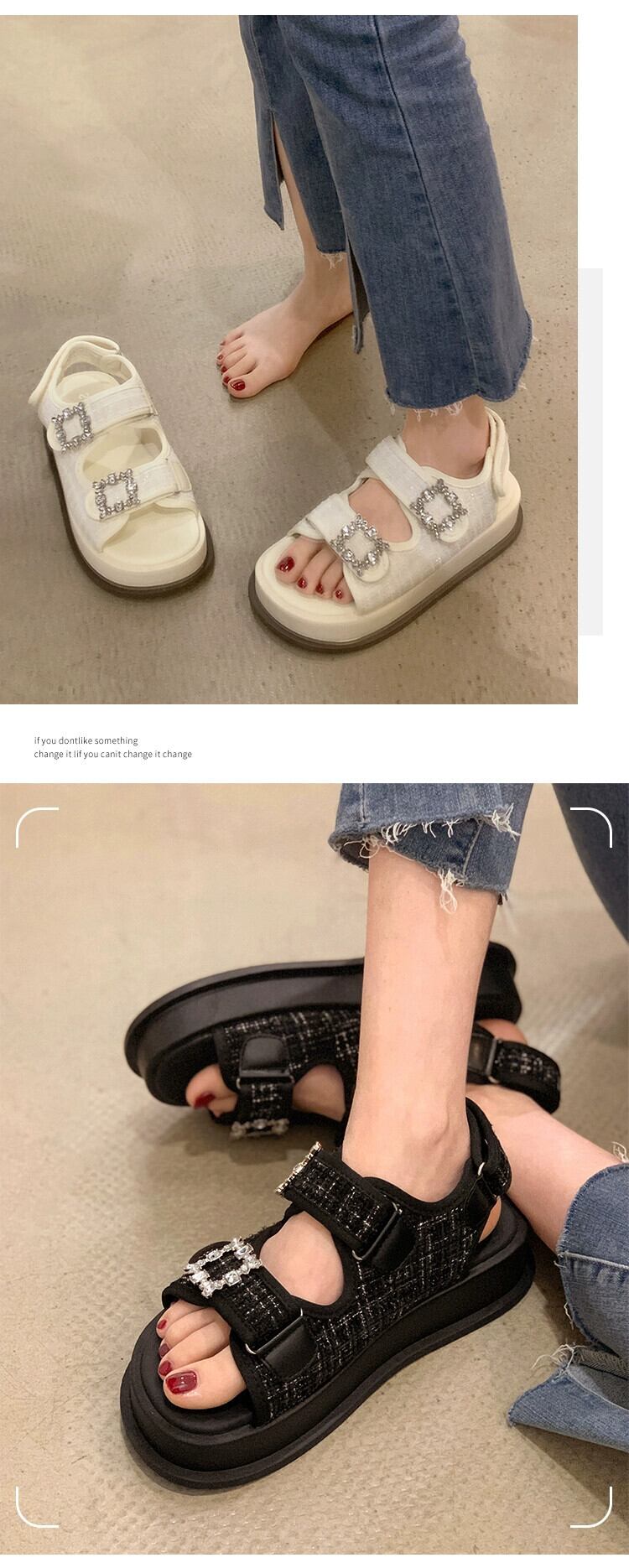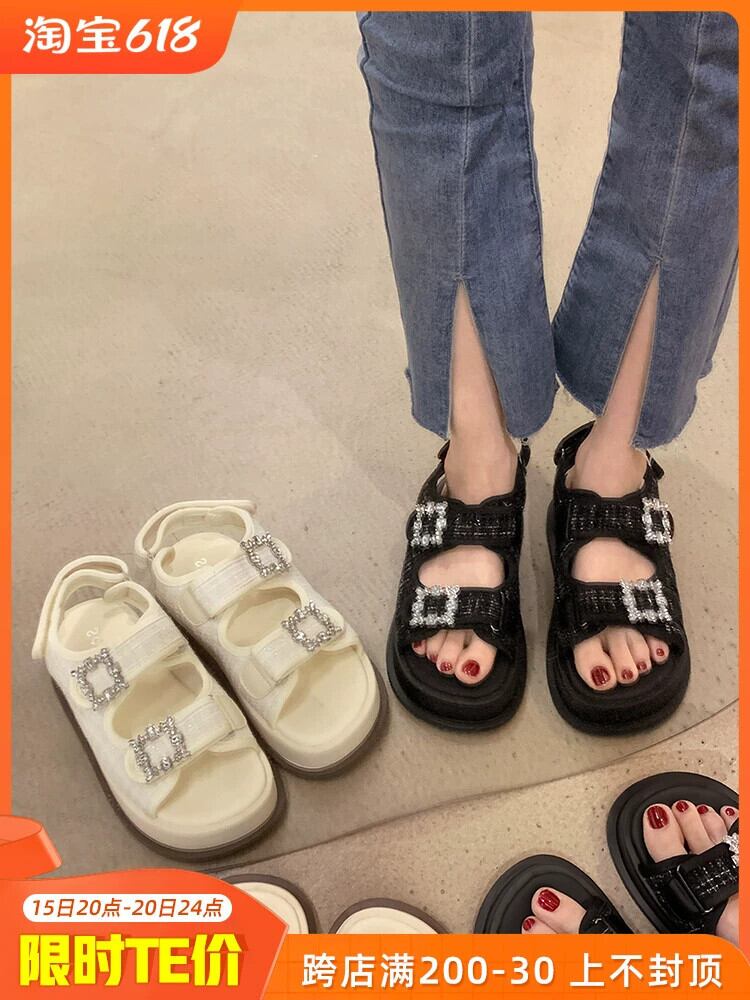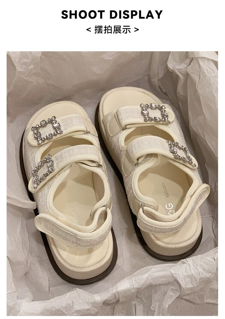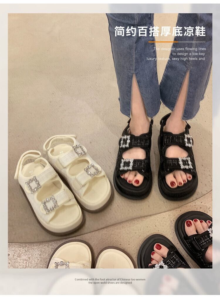 ネットレッドサンダル女性の 2023 夏の新ファッションオールマッチレトロラインストーンベルクロ厚底ノンスリップビーチシューズ 靴 サマー 夏物 jxjxf36034529445