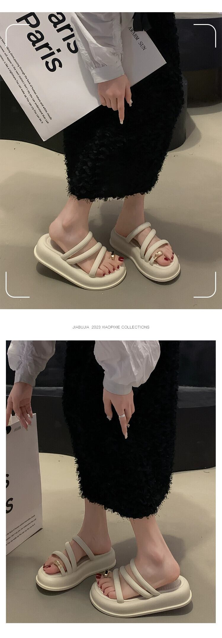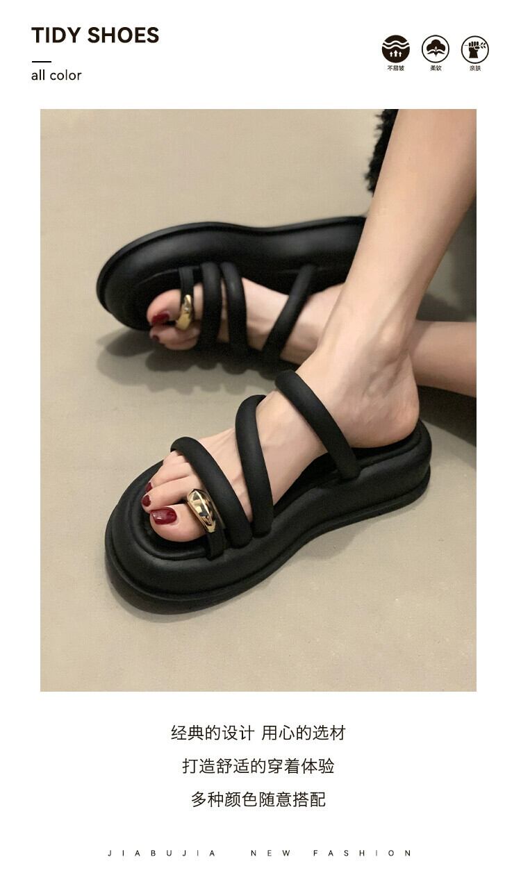 夏セットトゥスリッパレディース外出 2023 新しいファッションシンプルなレトロメタル厚底カジュアルサンダルとスリッパ ミュール 靴 シューズ サマー 夏物 jxjxf22908728372