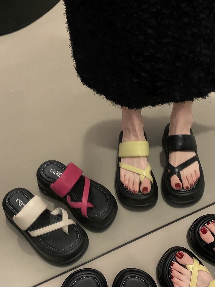 女性のスリッパアウターウェア 2023 夏の新ファッションオールマッチレトロアインスタイルの小さな厚底スリッポンサンダル ミュール 靴 シューズ サマー 夏物 jxjxf92306714208