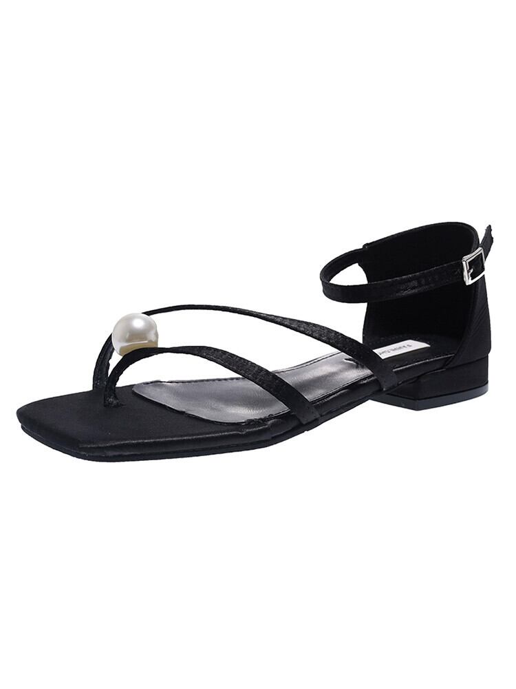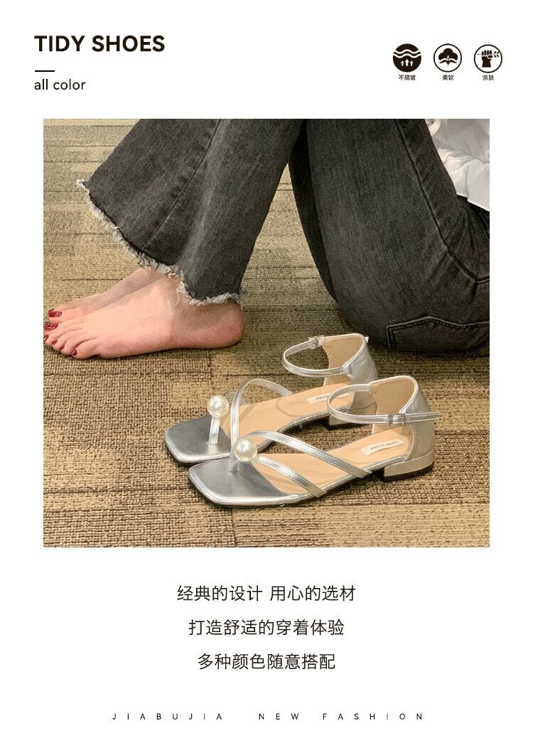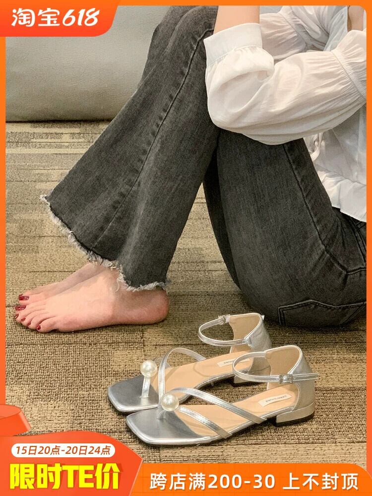 ネットレッドサンダル女性の 2023 夏の新ファッション eign スタイルレトロパール Tバック平底妖精スタイルローマンシューズ 靴 サマー 夏物 真珠 jxjxf28686353096