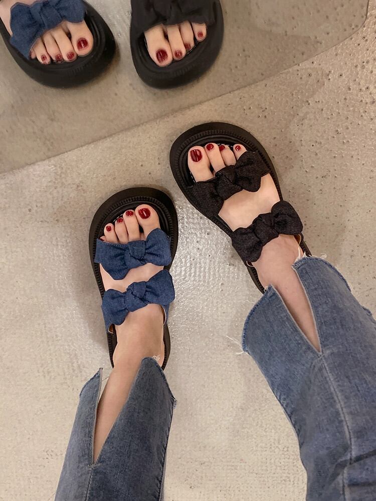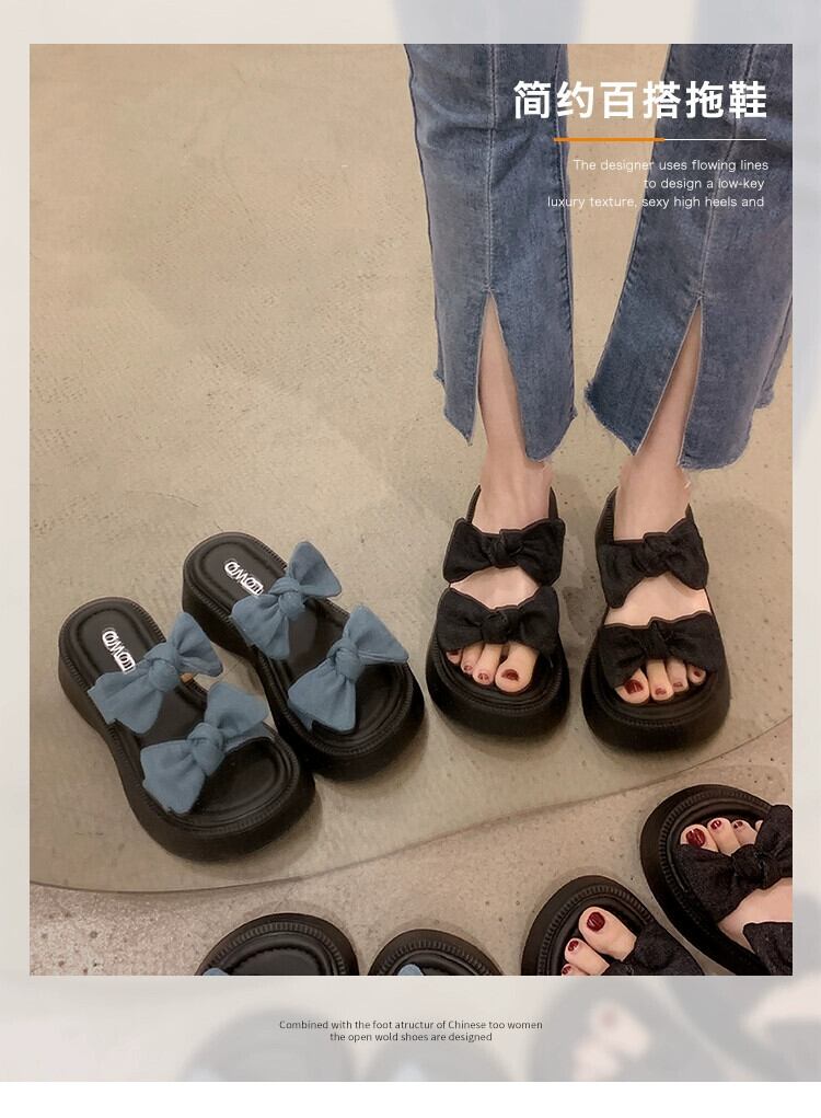 厚底一言スリッパの女性は、2023年の夏の新しいファッションオールマッチレトロリボンビーチサンダルとスリッパに出かけます ミュール 靴 シューズ サマー 夏物 jxjxf36852622321