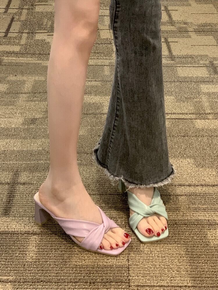 厚底スリッパレディースアウター2023夏の気質フレンチレトロファッションカジュアルコンタブル一言ハイヒールシューズ 靴 ミュール サマー 夏物 jxjxf60763669871
