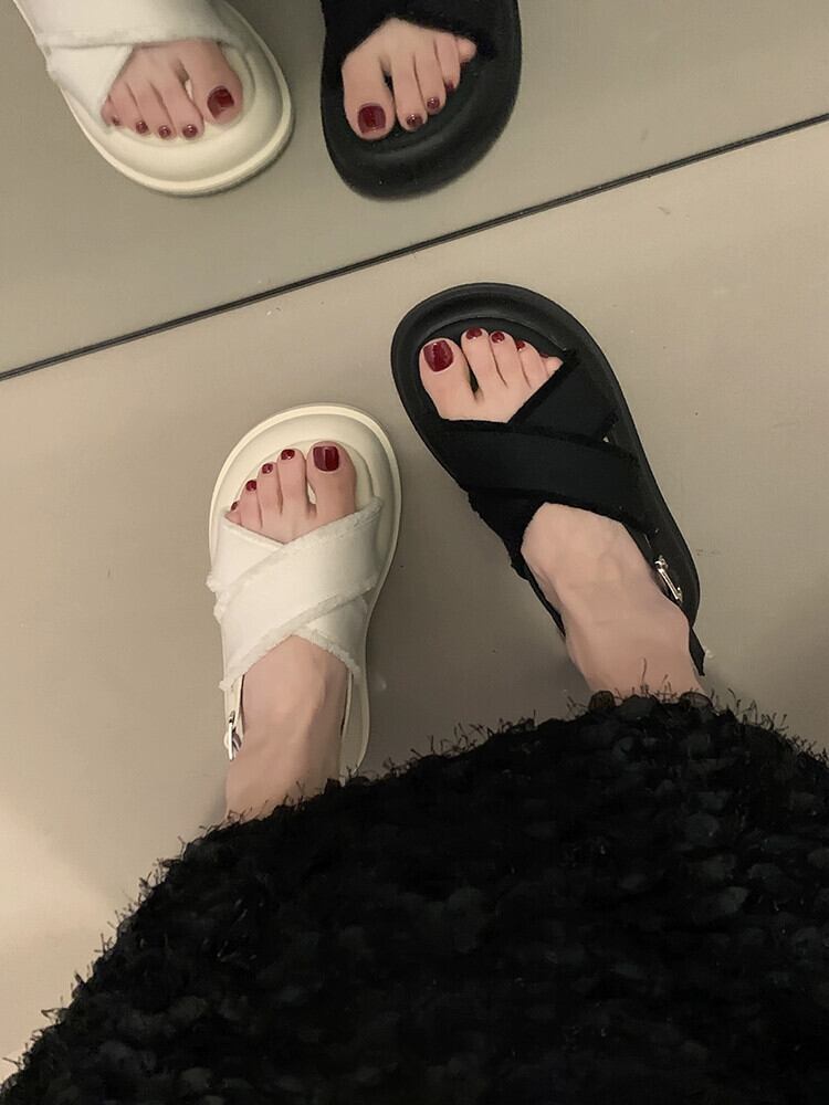 2023年の夏の女性のサンダルの新しいファッションと快適なシンプルなオールマッチEignスタイルの厚底滑り止めカジュアルビーチシューズ 靴 サマー 夏物 jxjxf23812570917