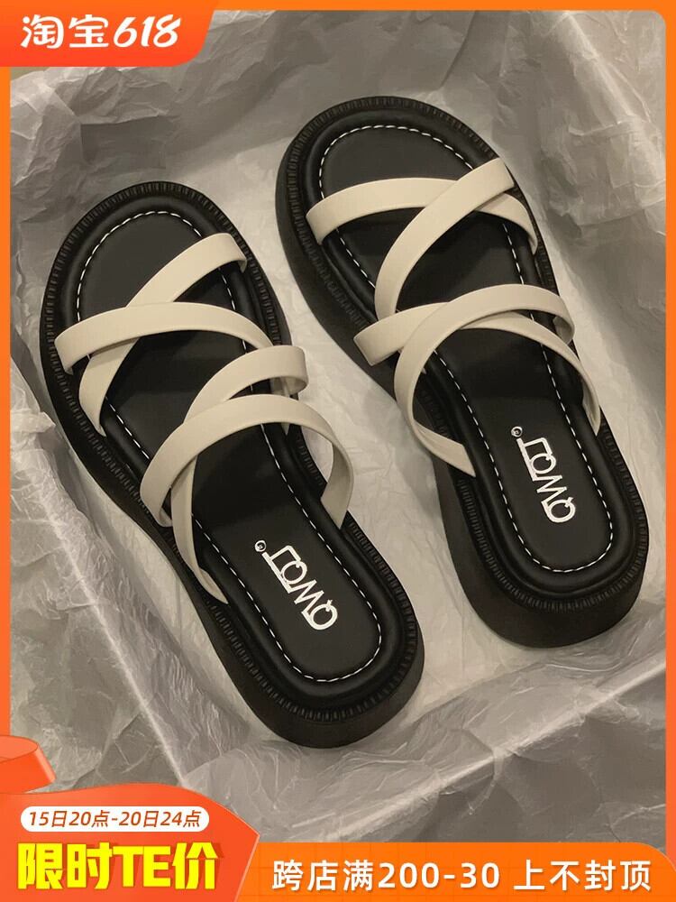 スリッパ女性の夏服 2023 新しいファッションレトロオールマッチ小さな厚底コンタブルサンダルとスリッパトレンド ミュール 靴 シューズ サマー 夏物 jxjxf75185011096