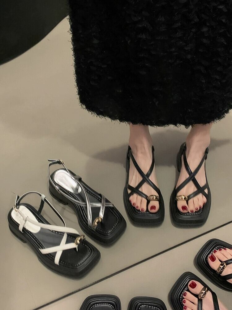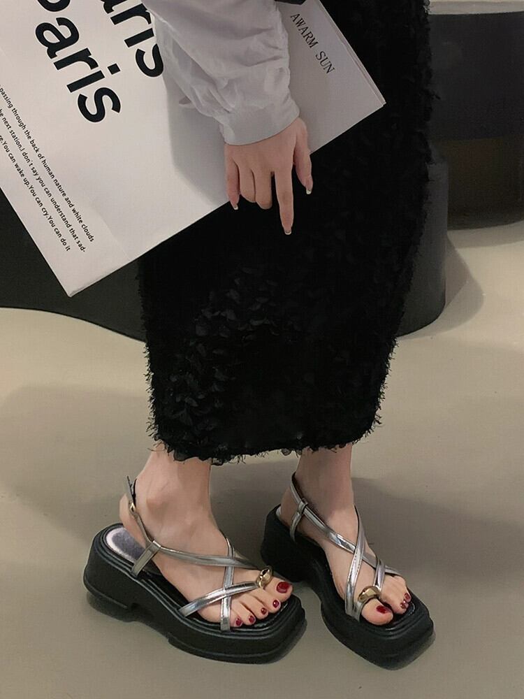 サンダル女性の夏の 2023 新しいネットレッドスーパーレトロオールマッチ厚底ノンスリップ金属つま先ローマンシューズ 靴 サマー 夏物 jxjxf46479216681