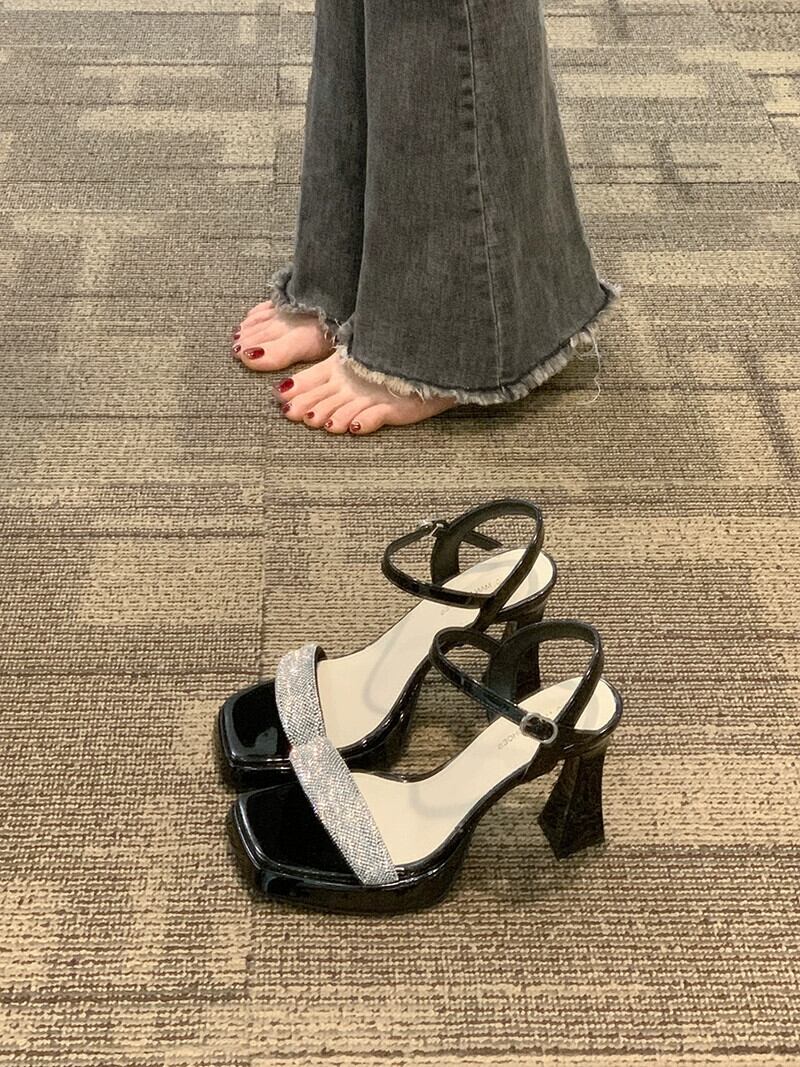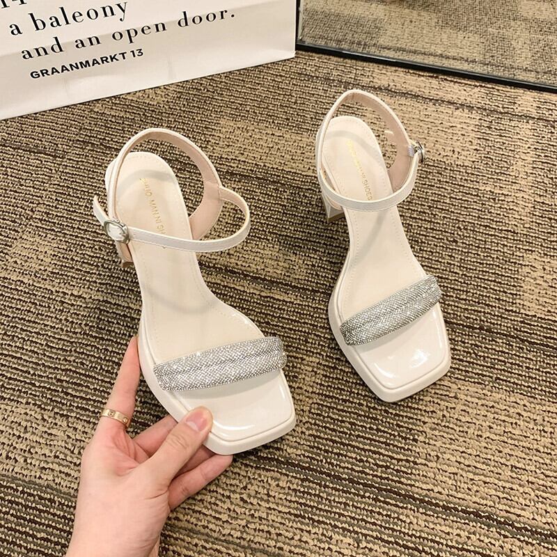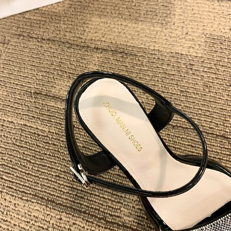 夏の女性のサンダル 2023 新しいスーパーファッションオールマッチレトロ eign スタイルのラインストーンスティレットハイヒール 靴 シューズ サマー 夏物 jxjxf18793107947