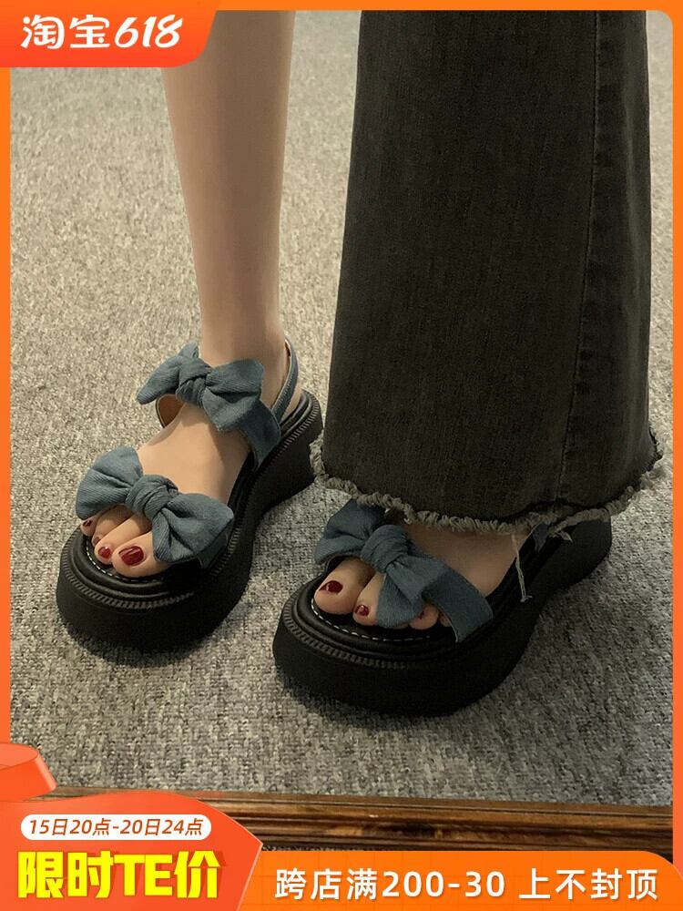 サンダル女性の夏の 2023 新しいファッションレトロな弓スタイル厚底ノンスリップ comtable ビーチシューズ潮 靴 リボン サマー 夏物 jxjxf23378267817
