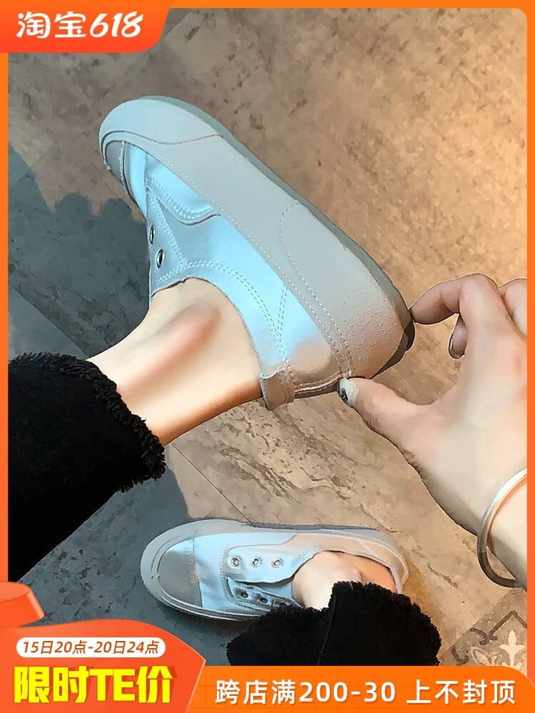 小さな白い靴の女性の 2023 春と秋の新作スーパーファッションオールマッチレトロソフトボトム comtable 通気性のあるライトカジュアルスニーカー シューズ ホワイト スプリング 春物 オータム 秋物 jxjxf24844173121