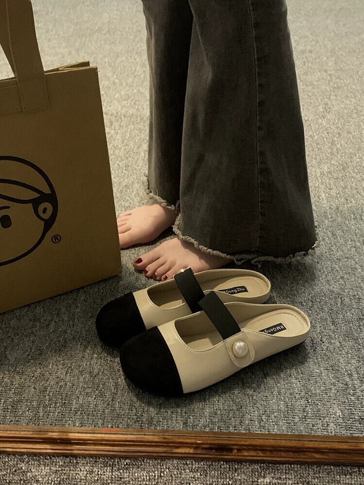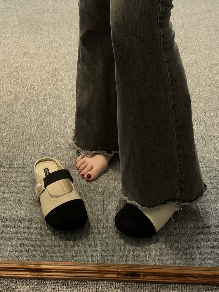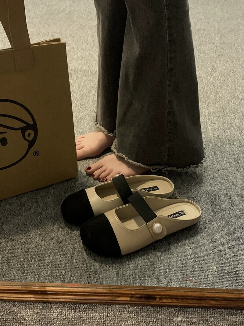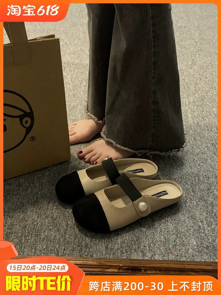 ハーフ包頭スリッパ女性の 2023 夏の新ネットレッドオールマッチレトロ comtable フラット滑り止めアウターウェアサンダルとスリッパ ミュール 靴 シューズ サマー 夏物 jxjxf96889788919