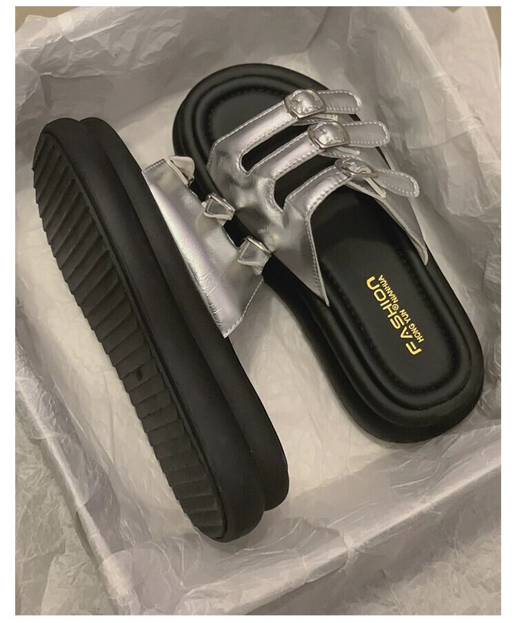 スリッパ女性の夏のアウターウェア 2023 新しいベルトバックルシンプルなレトロ厚底 comtable カジュアルシーサイドサンダルとスリッパ ミュール 靴 シューズ サマー 夏物 ハーネス jxjxf63585915778