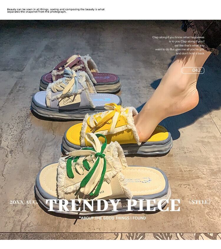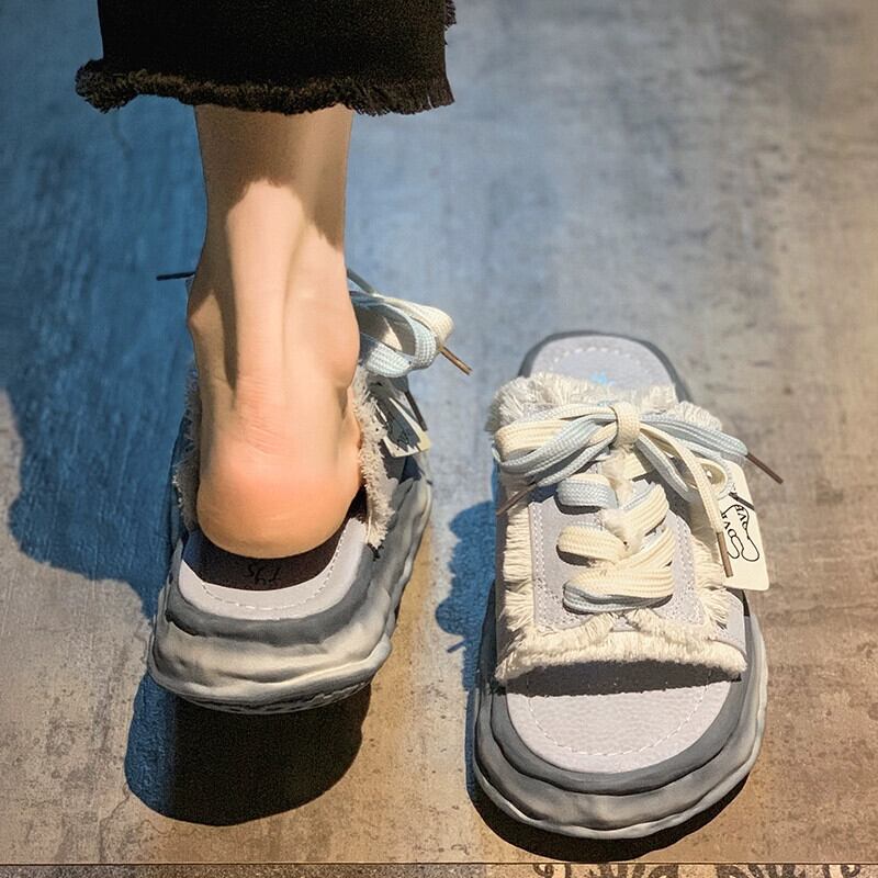 2023年夏のアウターレディーススリッパ新しいネットレッドスーパーオールマッチ小男性溶解厚底カジュアルビーチサンダル ミュール 靴 シューズ サマー 夏物 jxjxf32725612686