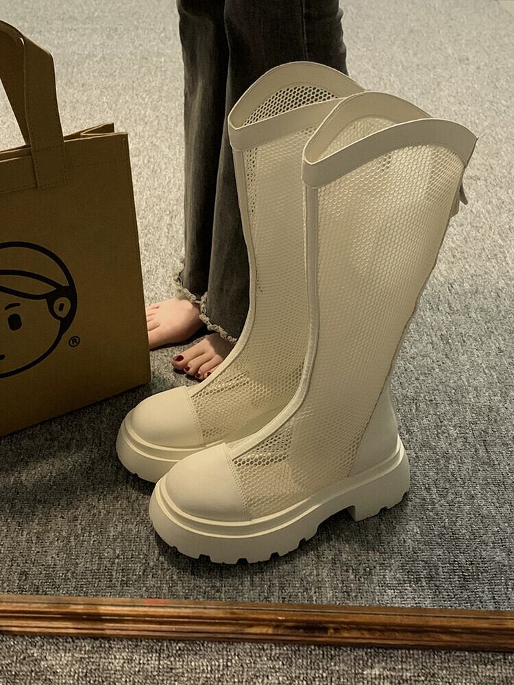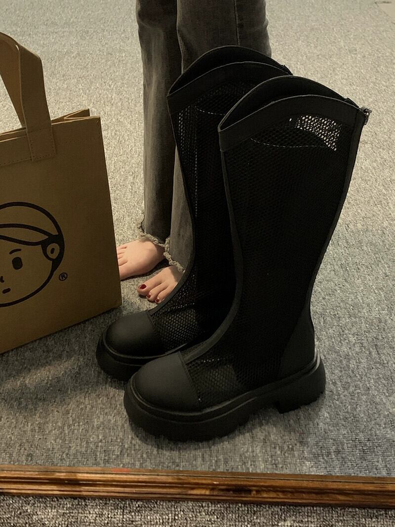 しかし、ニーブーツの女性の夏の 2023 新しいレトロオールマッチファッションメッシュ通気性厚いヒールノンスリップサンダル 靴 シューズ サマー 夏物 jxjxf48384908219