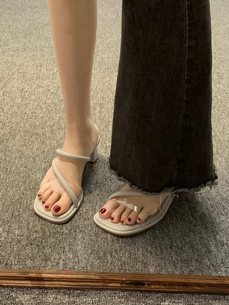 スリッパ女性の夏服 2023 新しいファッションオールマッチレトロ気質チャンキーヒールノンスリップワードサンダルとスリッパ ミュール 靴 シューズ サマー 夏物 jxjxf46200405812