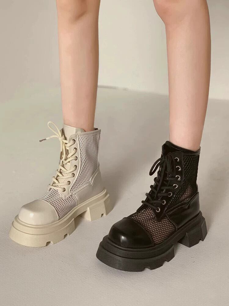太ヒールショートブーツレディース 2023 夏の新ファッションメッシュ通気性レトロハンサムな英国スタイルの薄いサンダル 靴 シューズ サマー 夏物 jxjxf88927046733