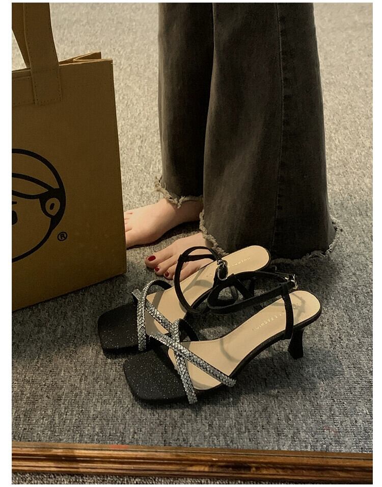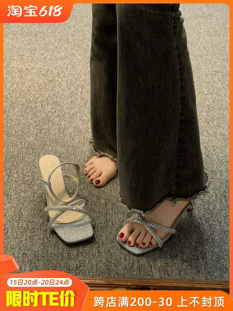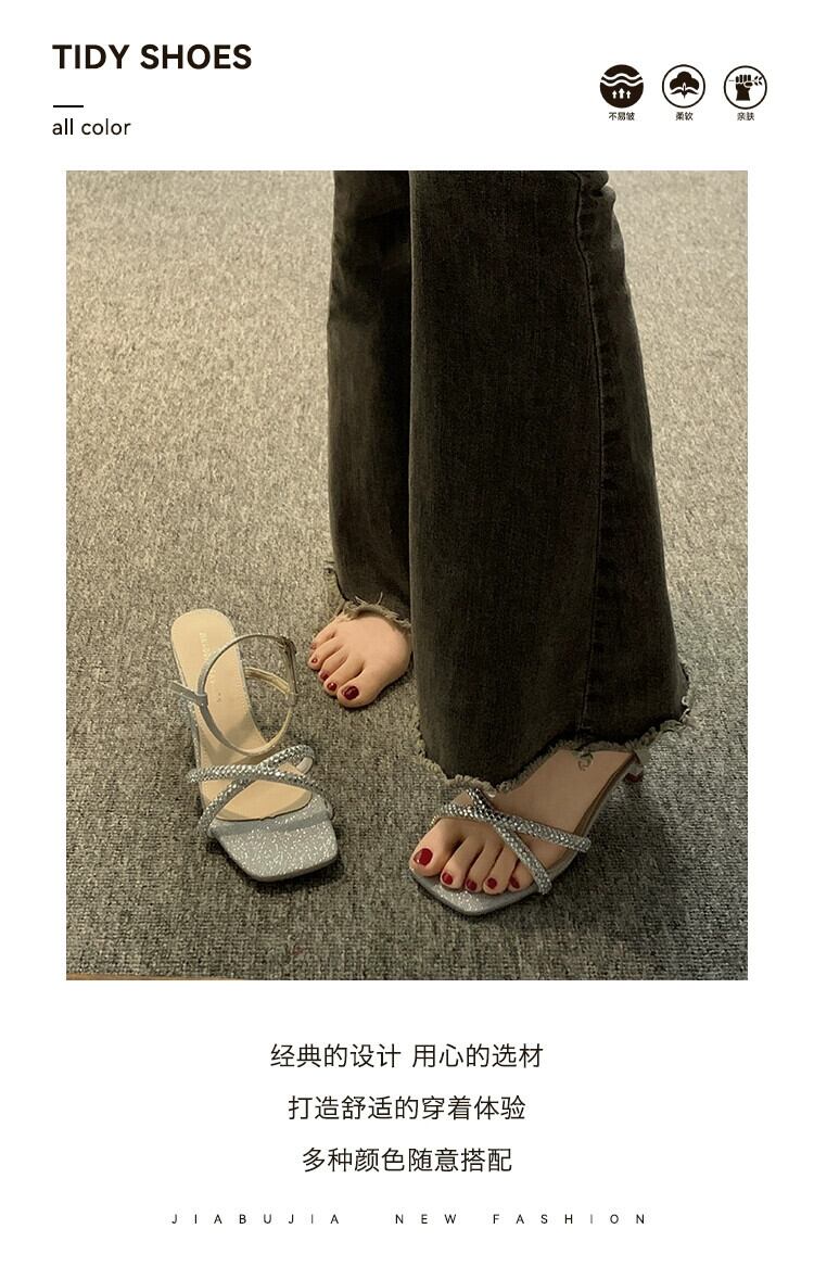 ワンワードサンダルレディース 2023 夏の新しいファッションオールマッチフェアリースタイル Eign スタイルのラインストーン、スカートとハイヒール付き 靴 シューズ サマー 夏物 jxjxf69868514032