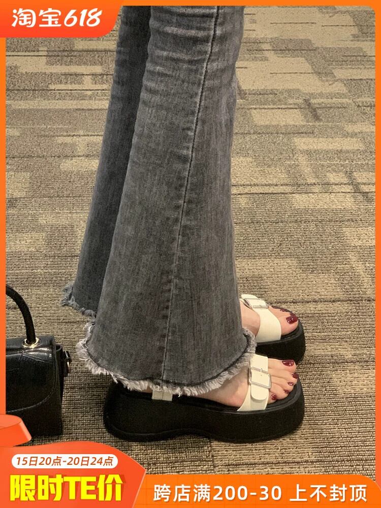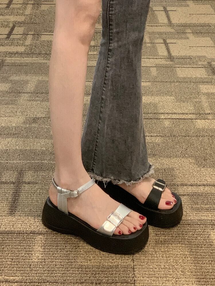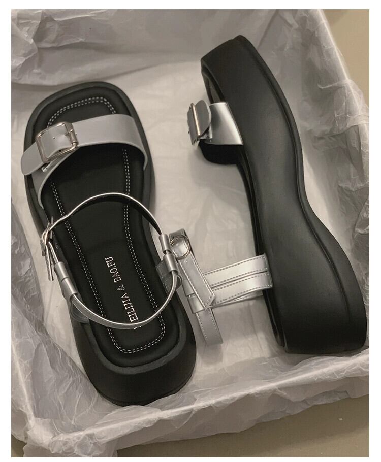 厚底ワンワードサンダルレディース 2023 夏の新作ファッションオールマッチレトロベルトバックルビーチサンダル潮 靴 シューズ サマー 夏物 ハーネス jxjxf85789405261