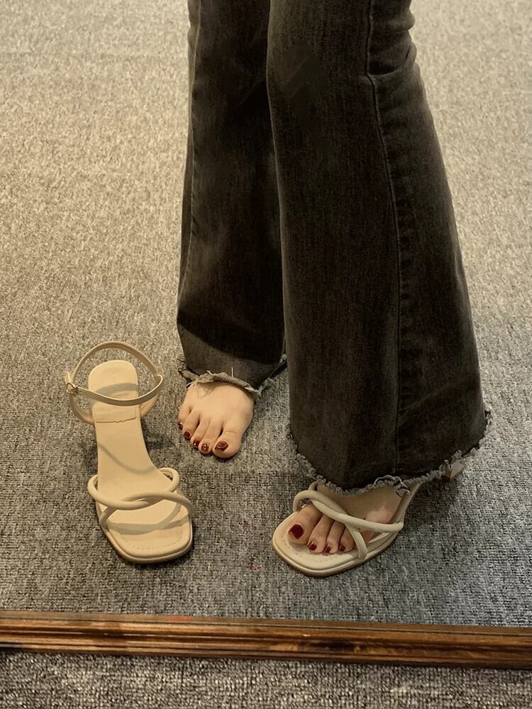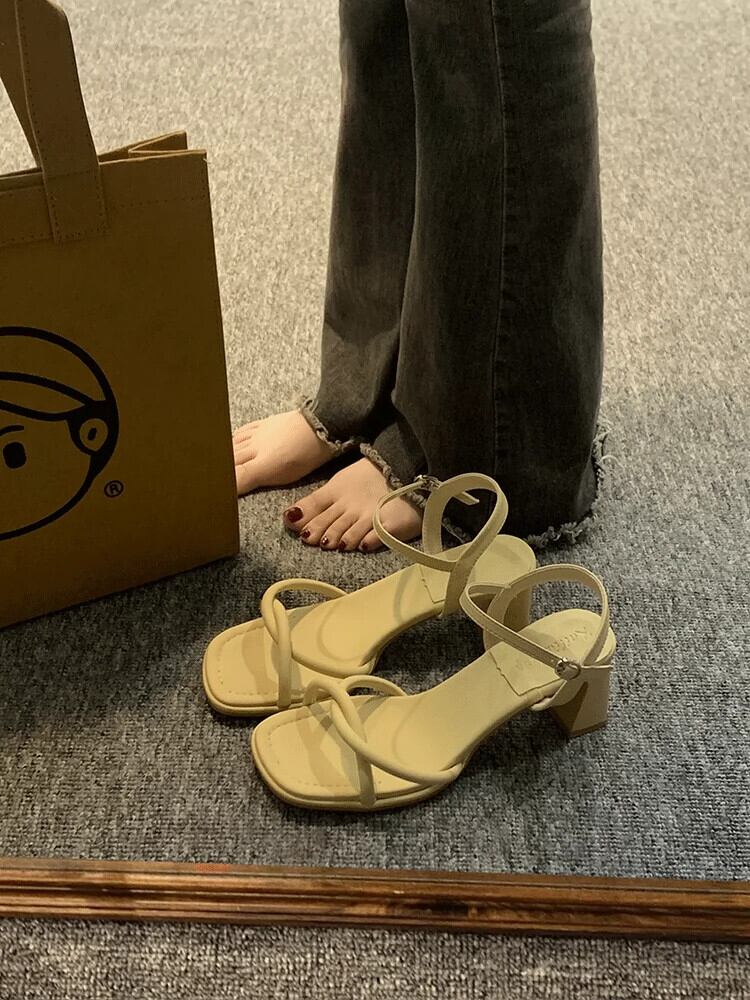 太いヒールサンダルレディース 2023 夏の新しいファッション気質フレンチスタイルのシンプルで優しい言葉とハイヒールの潮流 靴 シューズ サマー 夏物 jxjxf10047378048