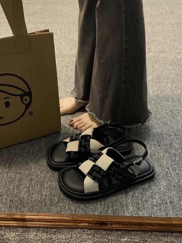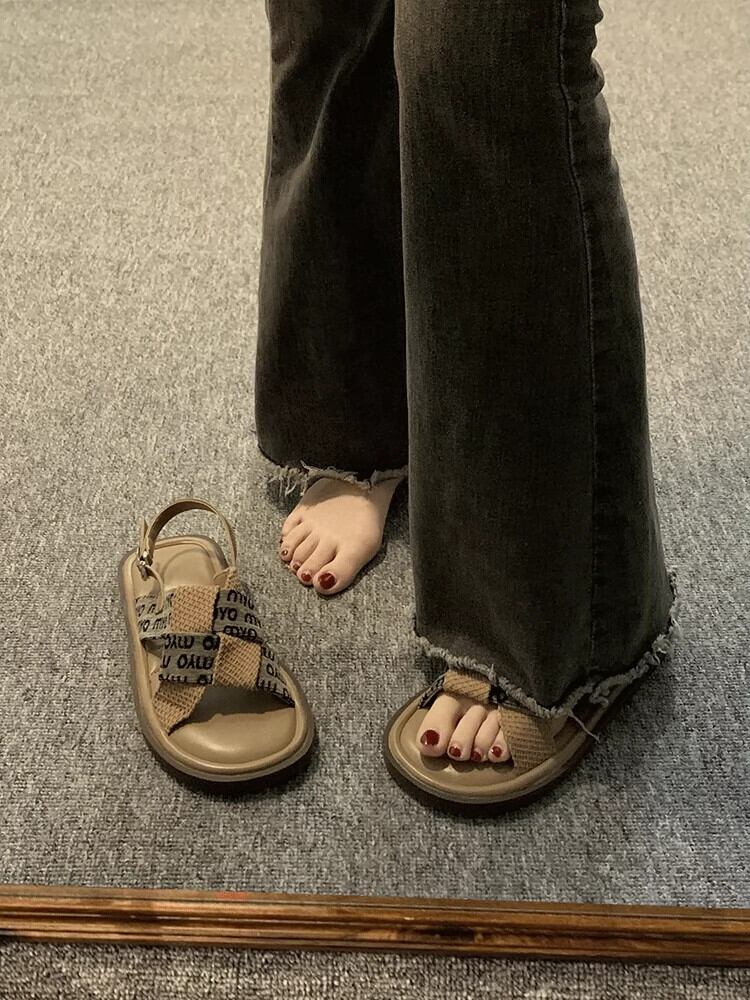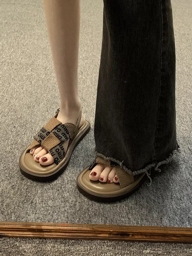 Jiabu 偽厚底ローマンサンダル女性の 2023 夏の新レトロニッチ織りノンスリップビーチシューズ潮 靴 サマー 夏物 jxjxf65533100880
