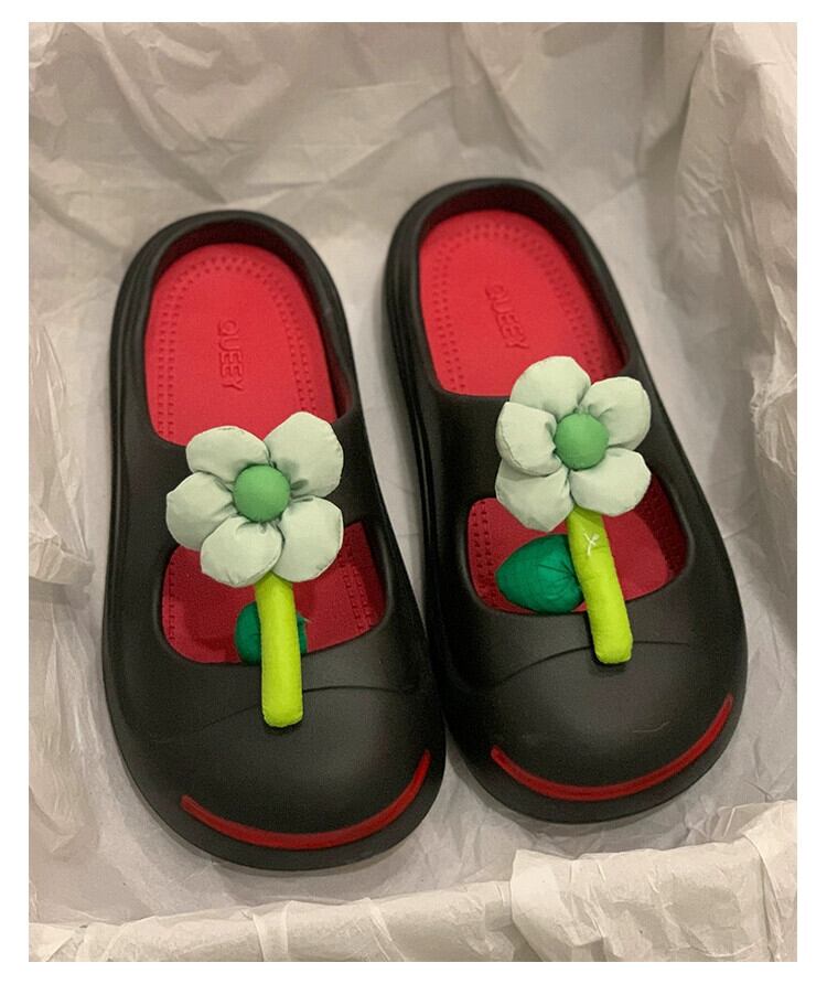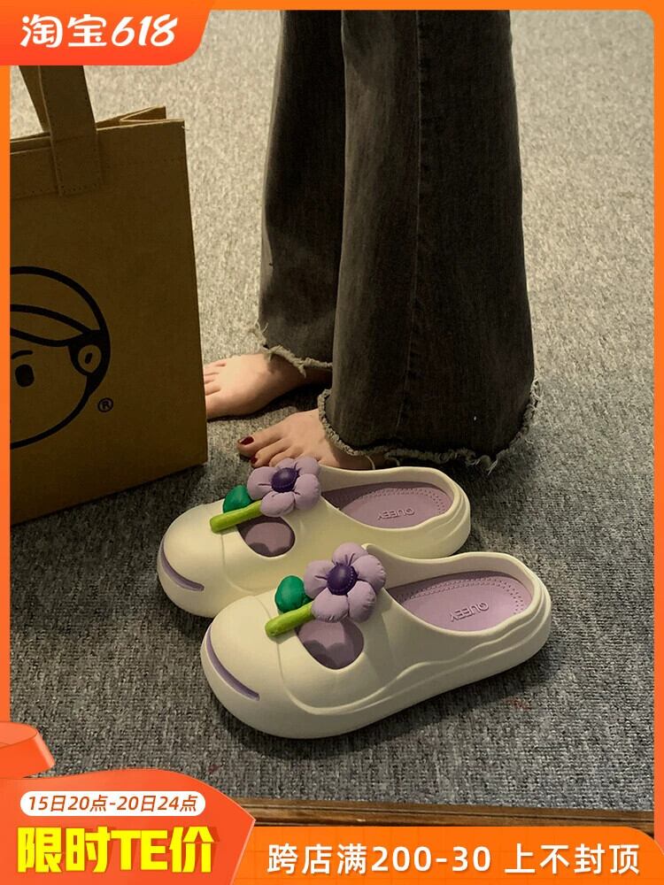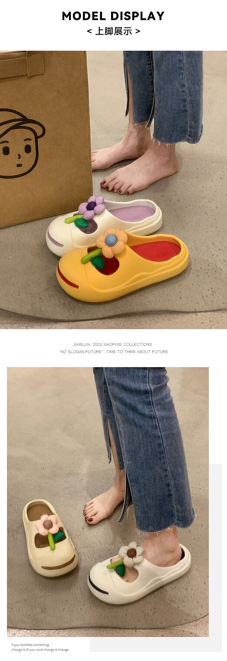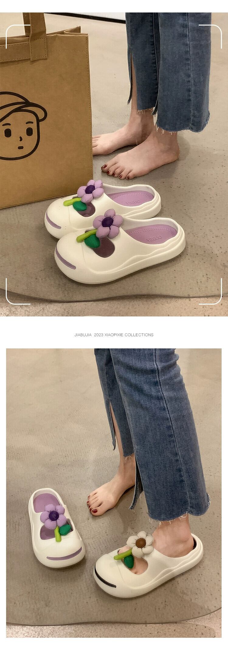 ネット有名人包頭ハーフスリッパ女性の 2023 夏の新ファッションオールマッチ花カジュアル厚底滑り止めサンダルとスリッパ ミュール 靴 シューズ サマー 夏物 フラワーデザイン jxjxf94544010997
