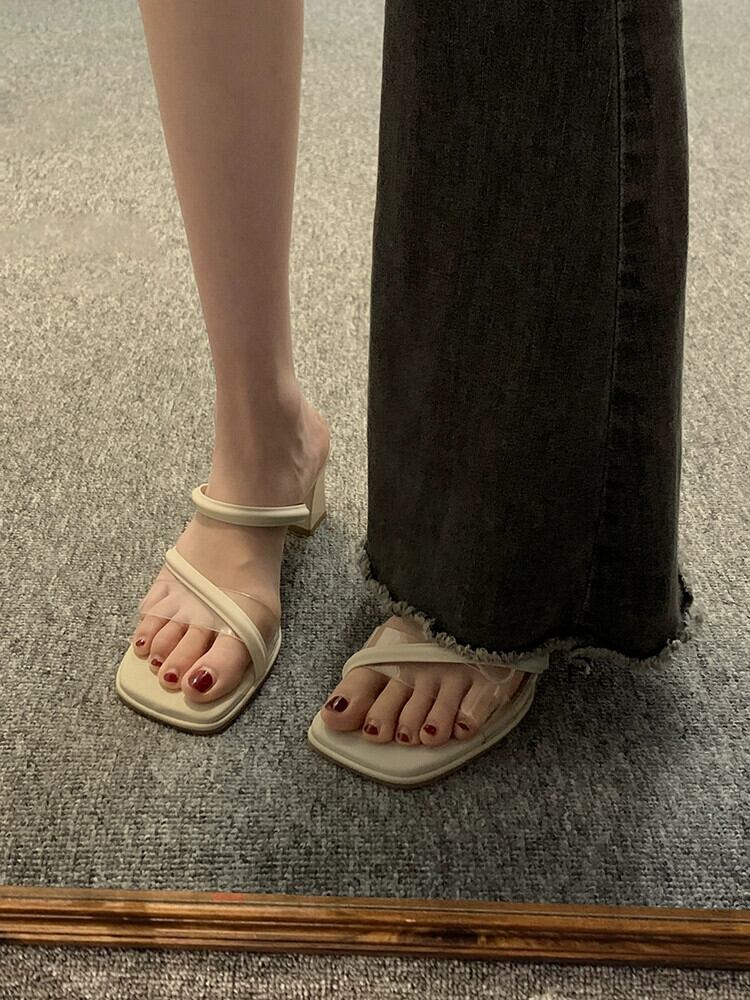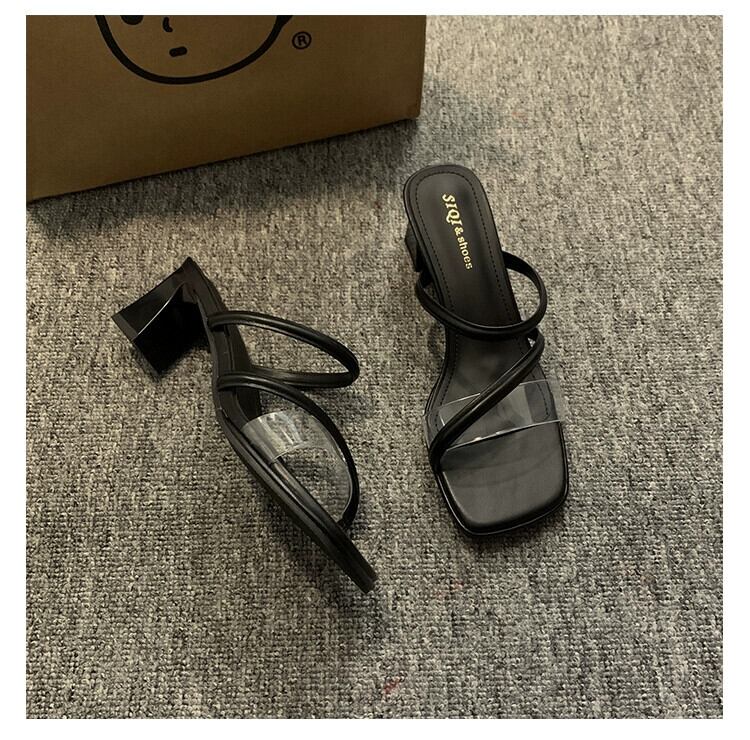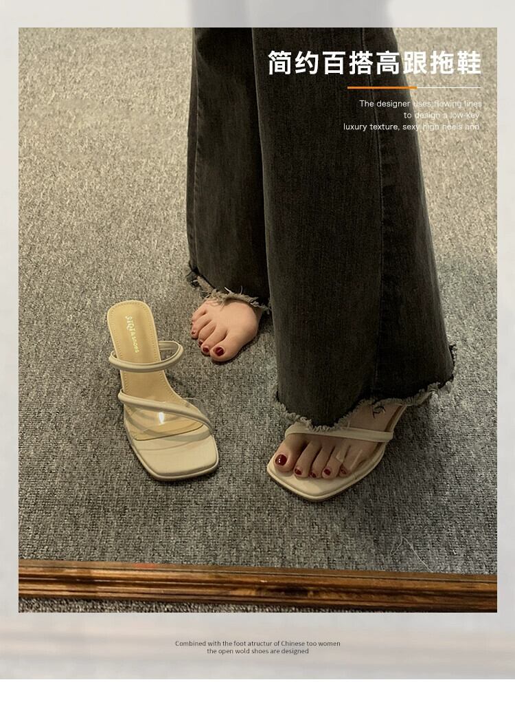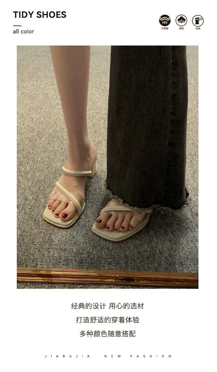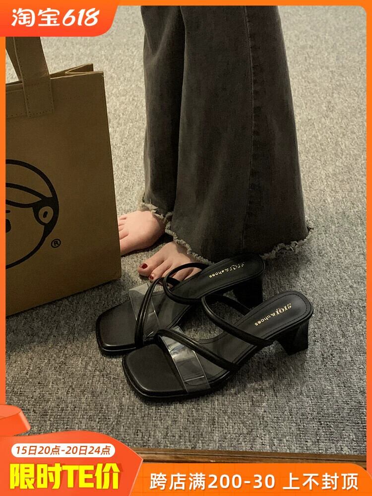 2023年夏のネットレッドの女性の太いヒールスリッパアウターウェアの新しいファッション気質フレンチカジュアルハイヒールシューズ 靴 ミュール サマー 夏物 jxjxf68644850218