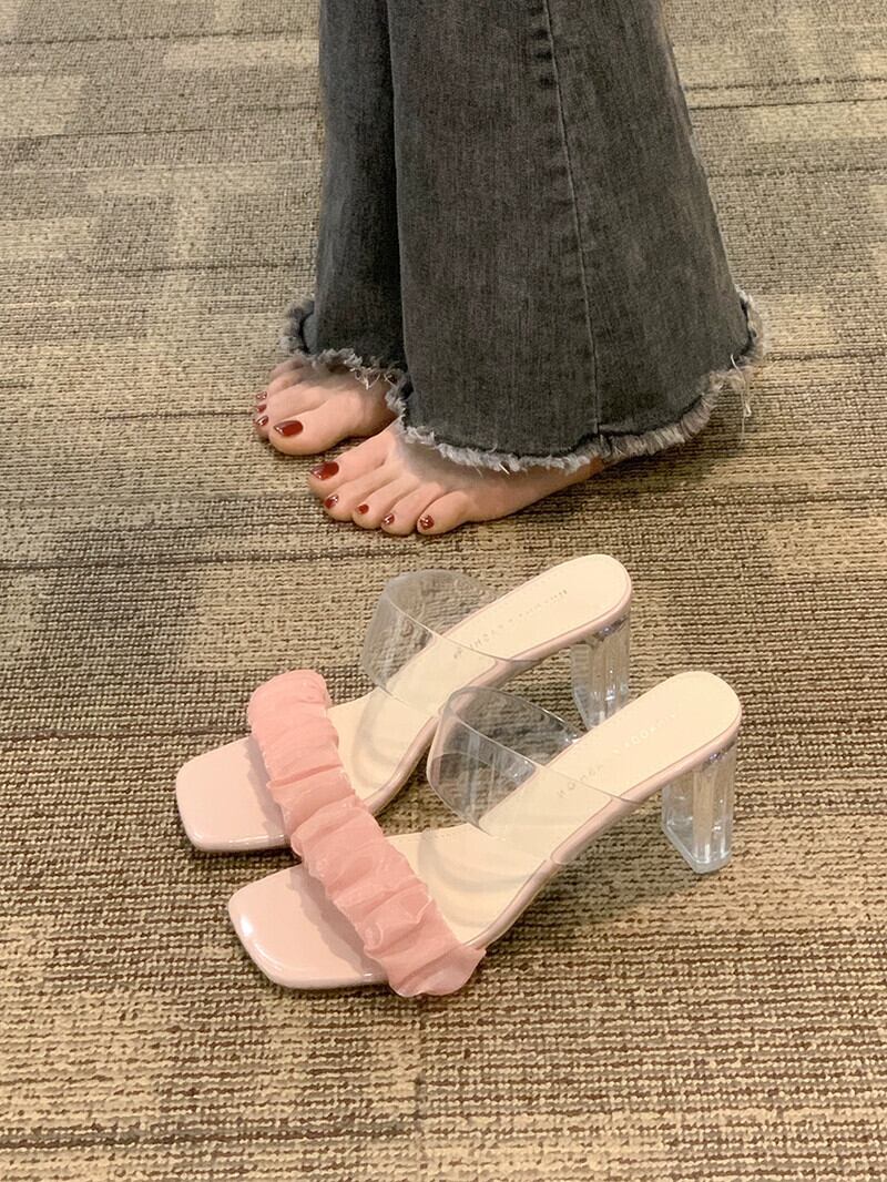 インターネットセレブスリッパ女性のスーパー 2023 夏の新ファッションオールマッチクリスタルハイヒールフェアリースタイルビーチサンダル 靴 シューズ ミュール サマー 夏物 jxjxf43577752110