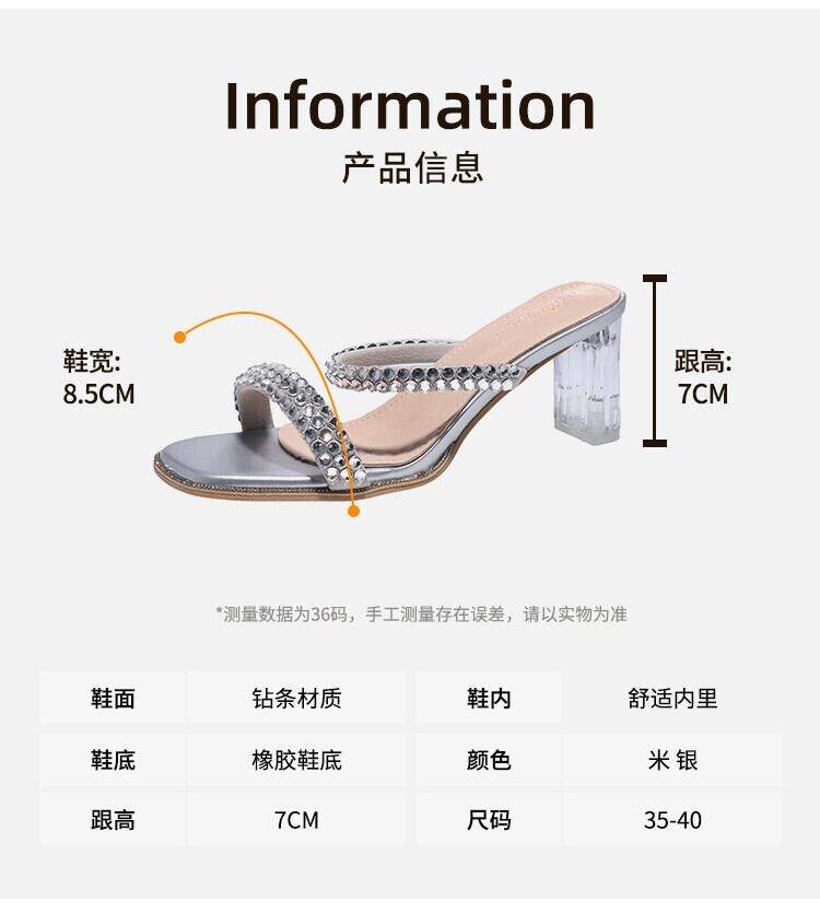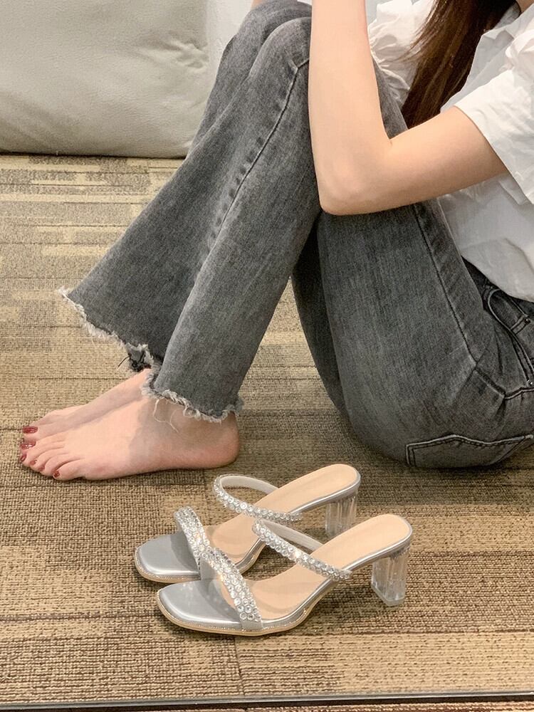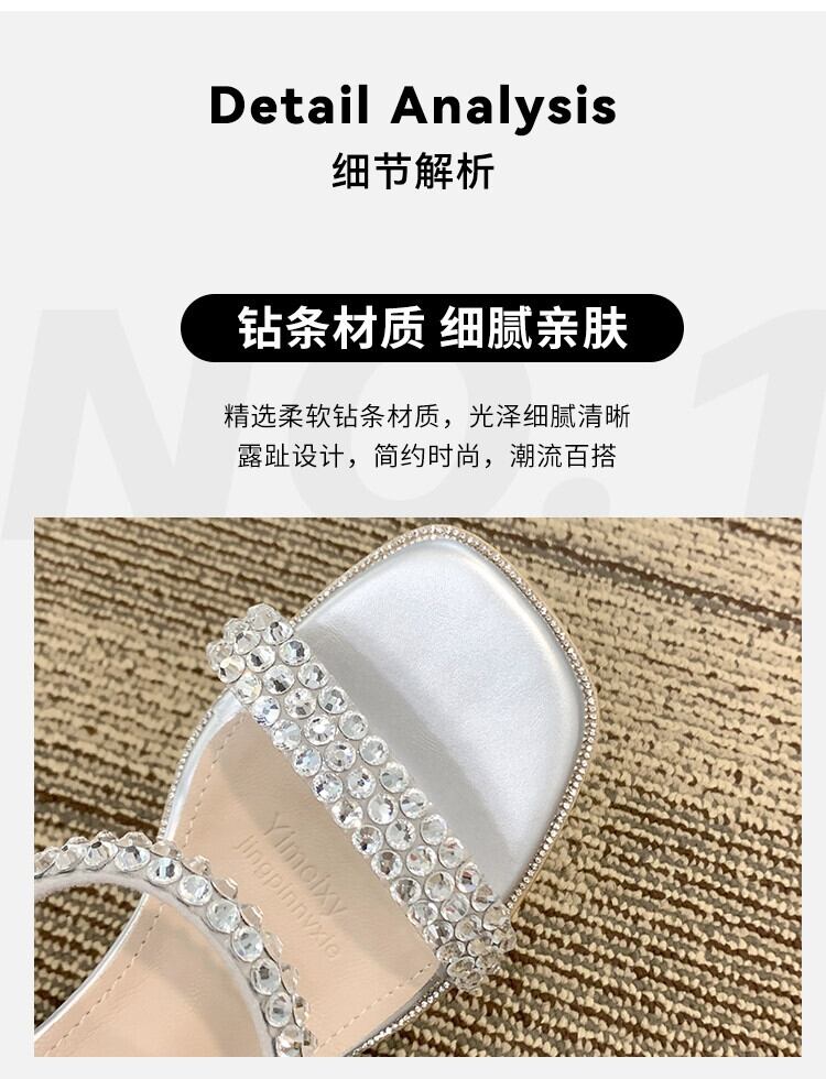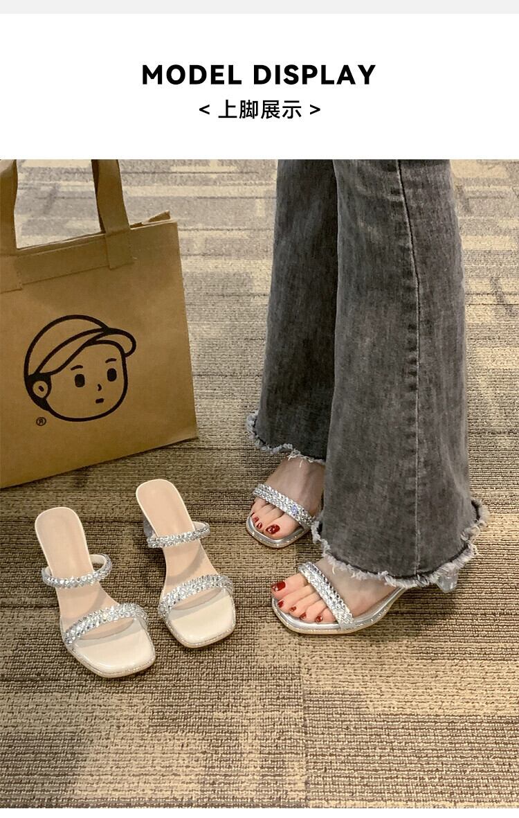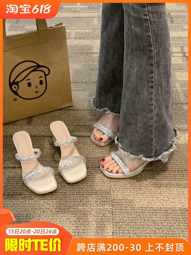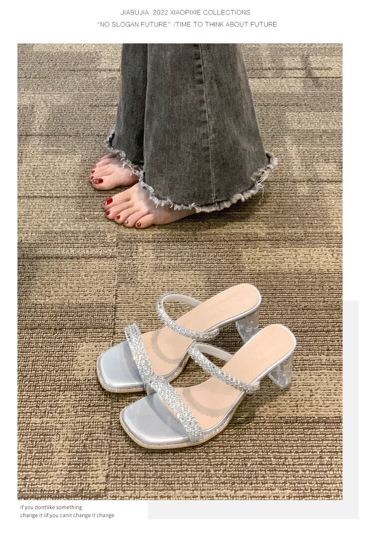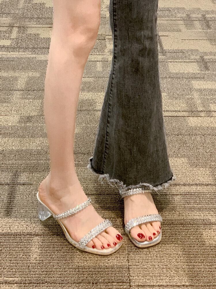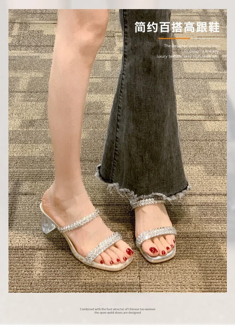 女性のスリッパアウターウェア 2023 夏の新しいファッションスタイルのラインストーン小さなクリスタルヒールサンダルとスリッパ ミュール 靴 シューズ サマー 夏物 jxjxf34634065813