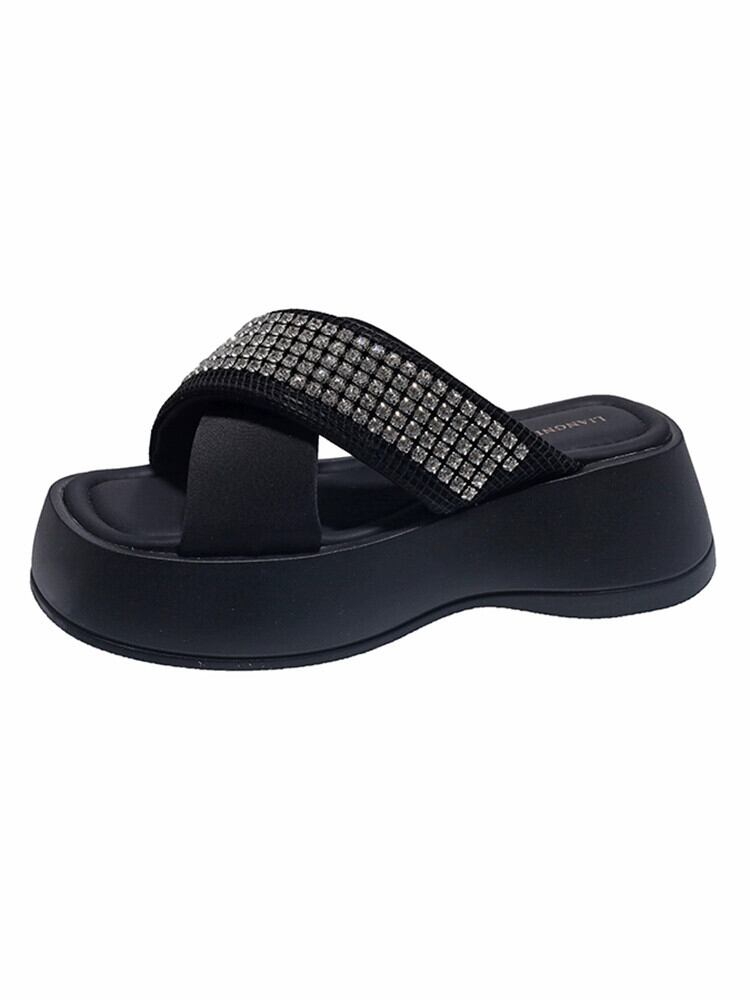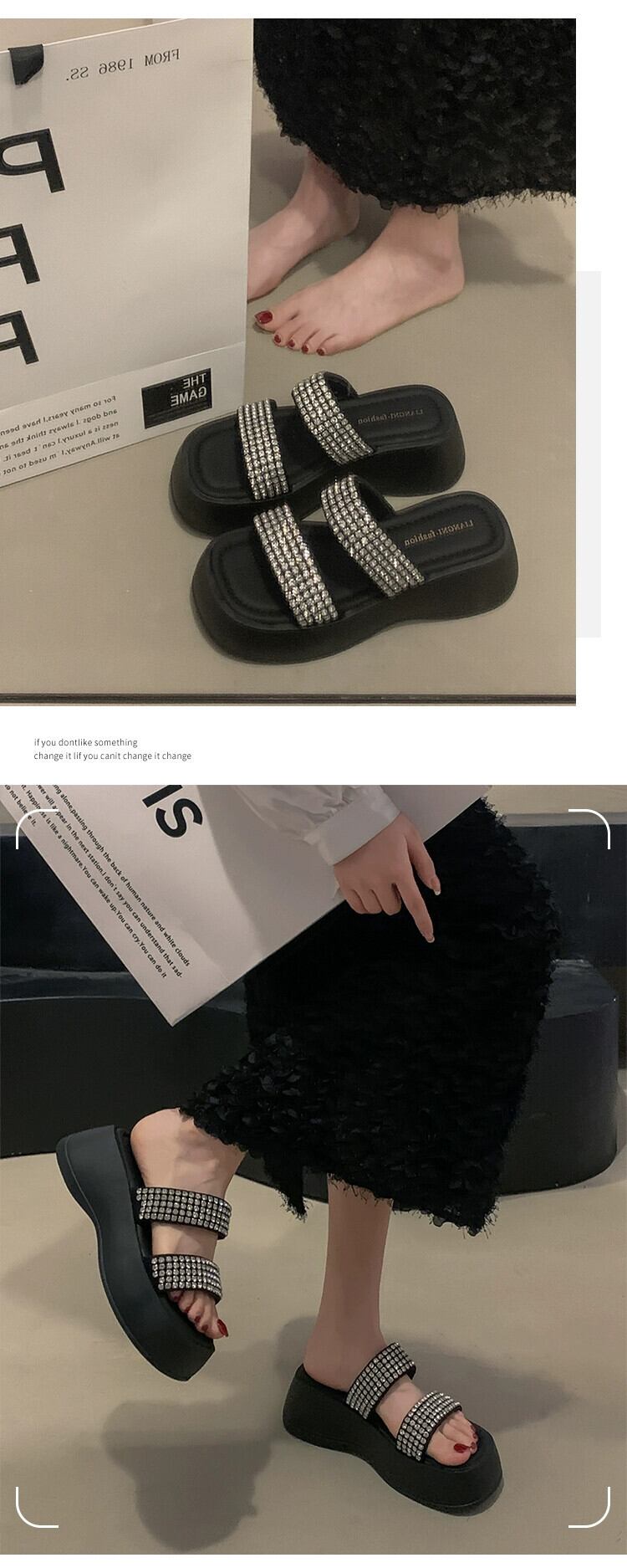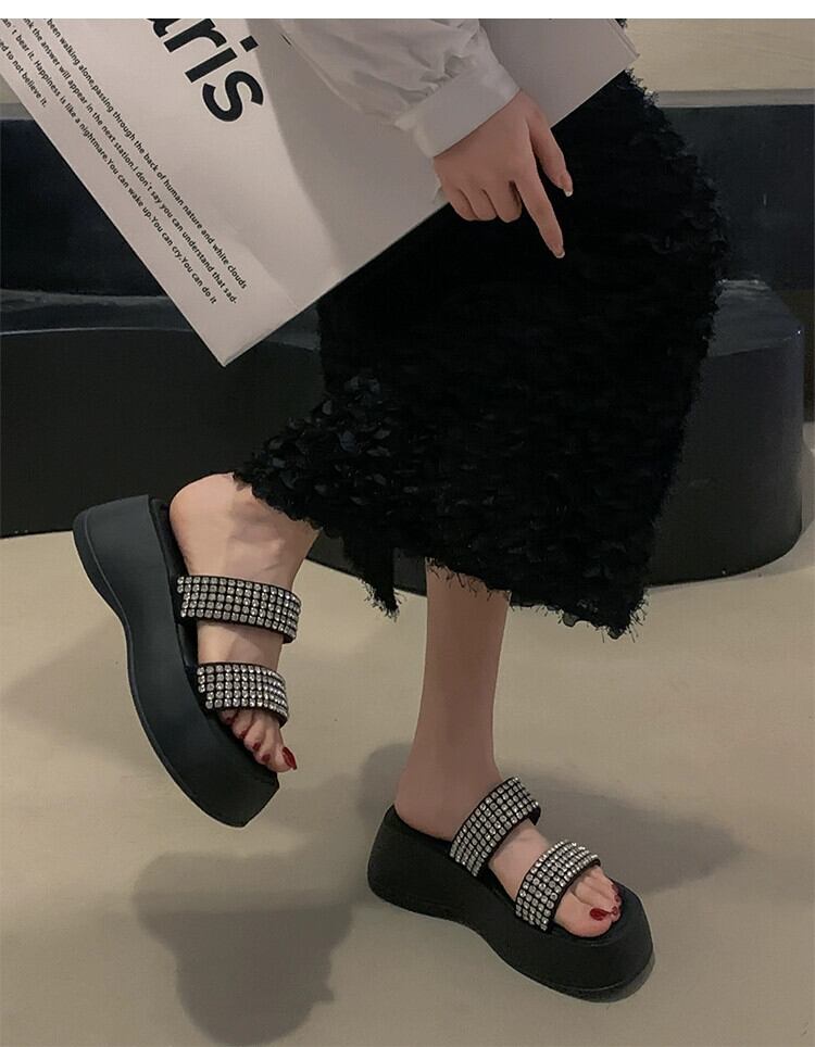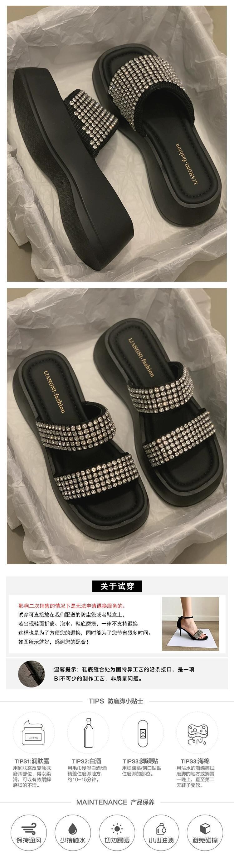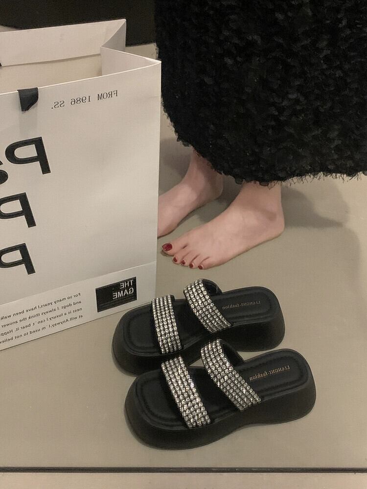 インターネット有名人のスリッパの女性のスーパーファイア 2023 夏の新ファッションレトロラインストーン厚底ノンスリップ妖精風ビーチサンダル ミュール 靴 シューズ サマー 夏物 jxjxf11562338206