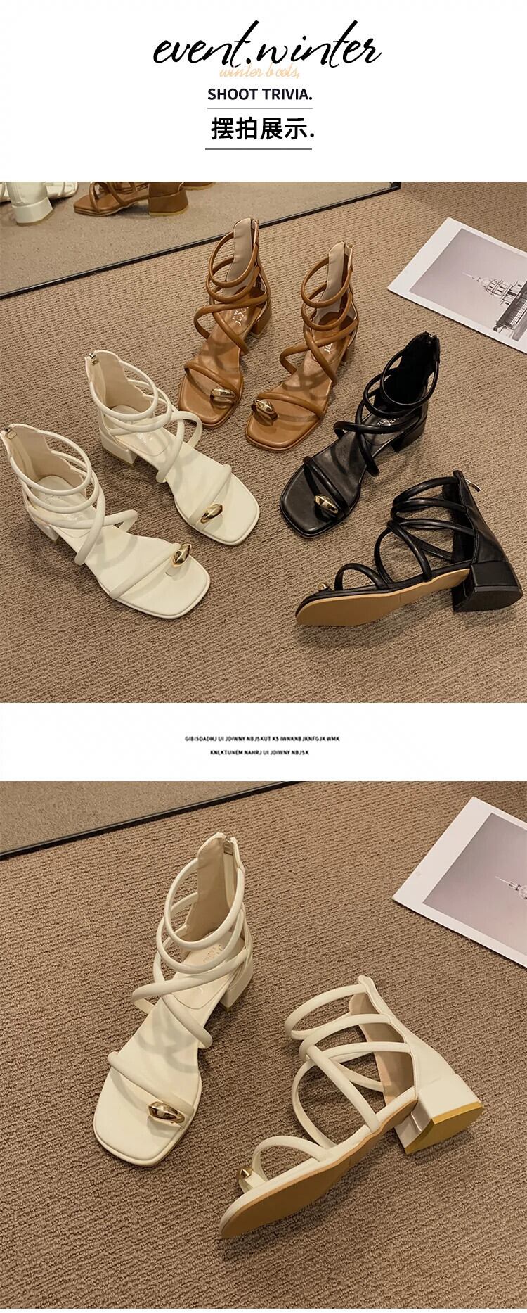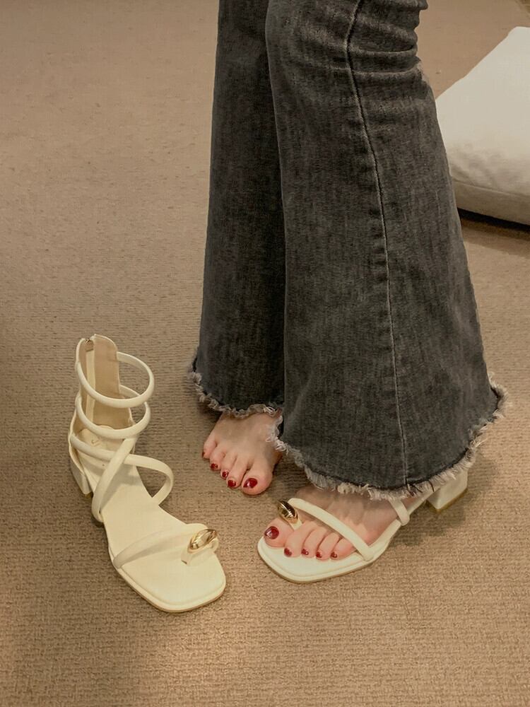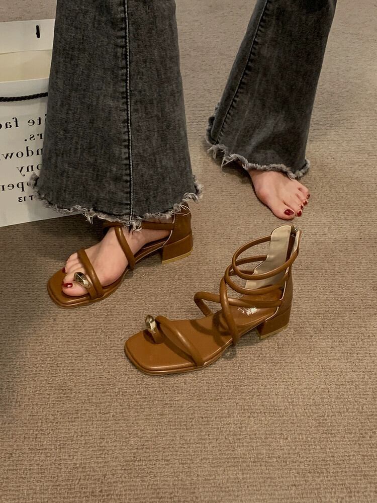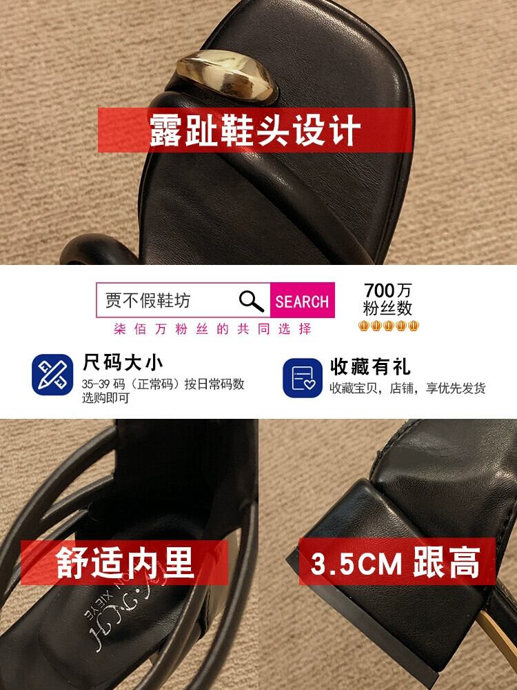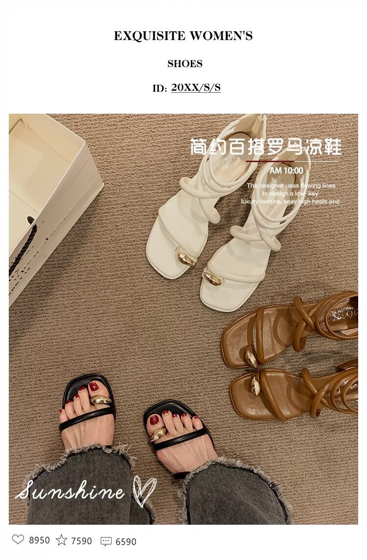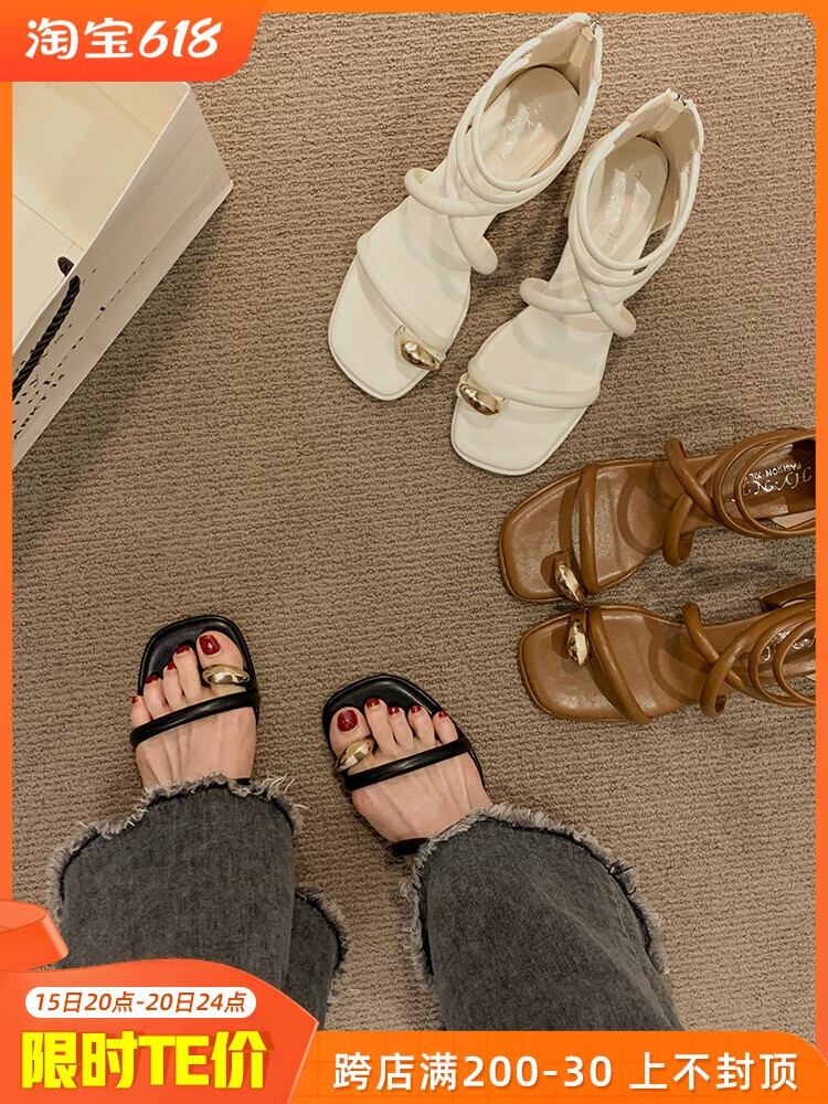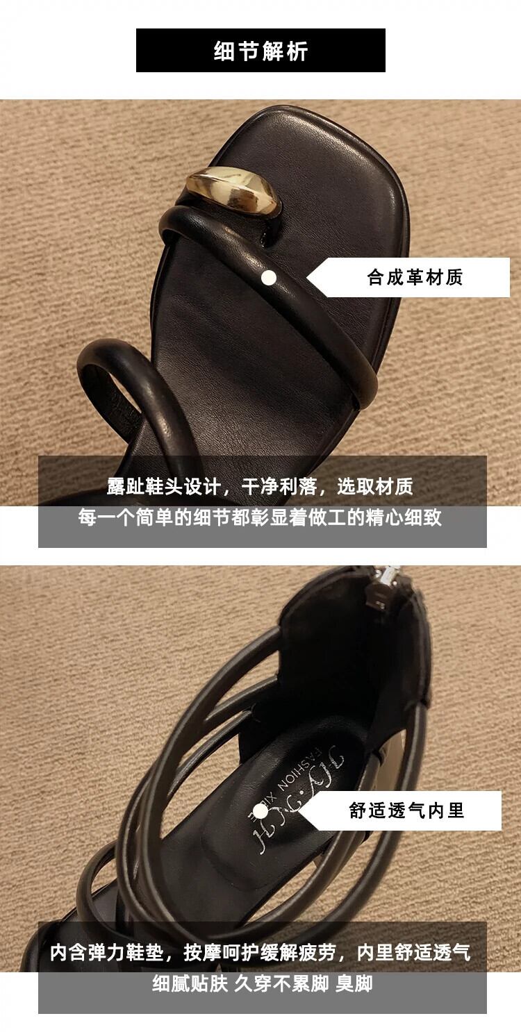 インターネットセレブサンダルレディース 2023 夏の新ファッション優しいレトロメタルトゥ厚いヒール滑り止めローマンシューズトレンド 靴 サマー 夏物 jxjxf46510144560