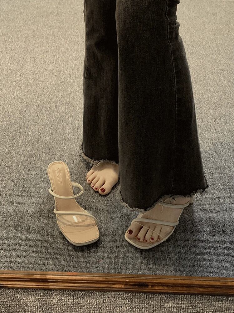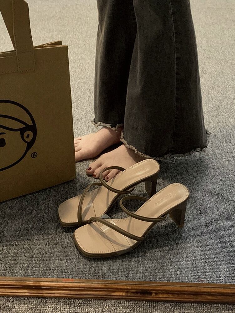 スリッパレディースアウターウェア 2023 夏の新しい超ファッショナブルなオールマッチジェントルアインスタイルクリスタルハイヒールサンダルとスリッパ 靴 シューズ ミュール サマー 夏物 jxjxf54882458705