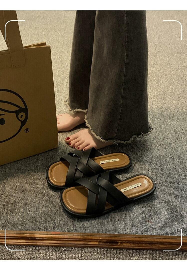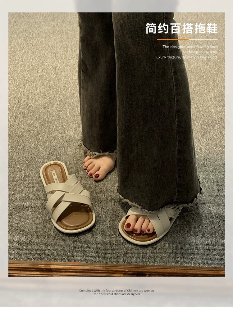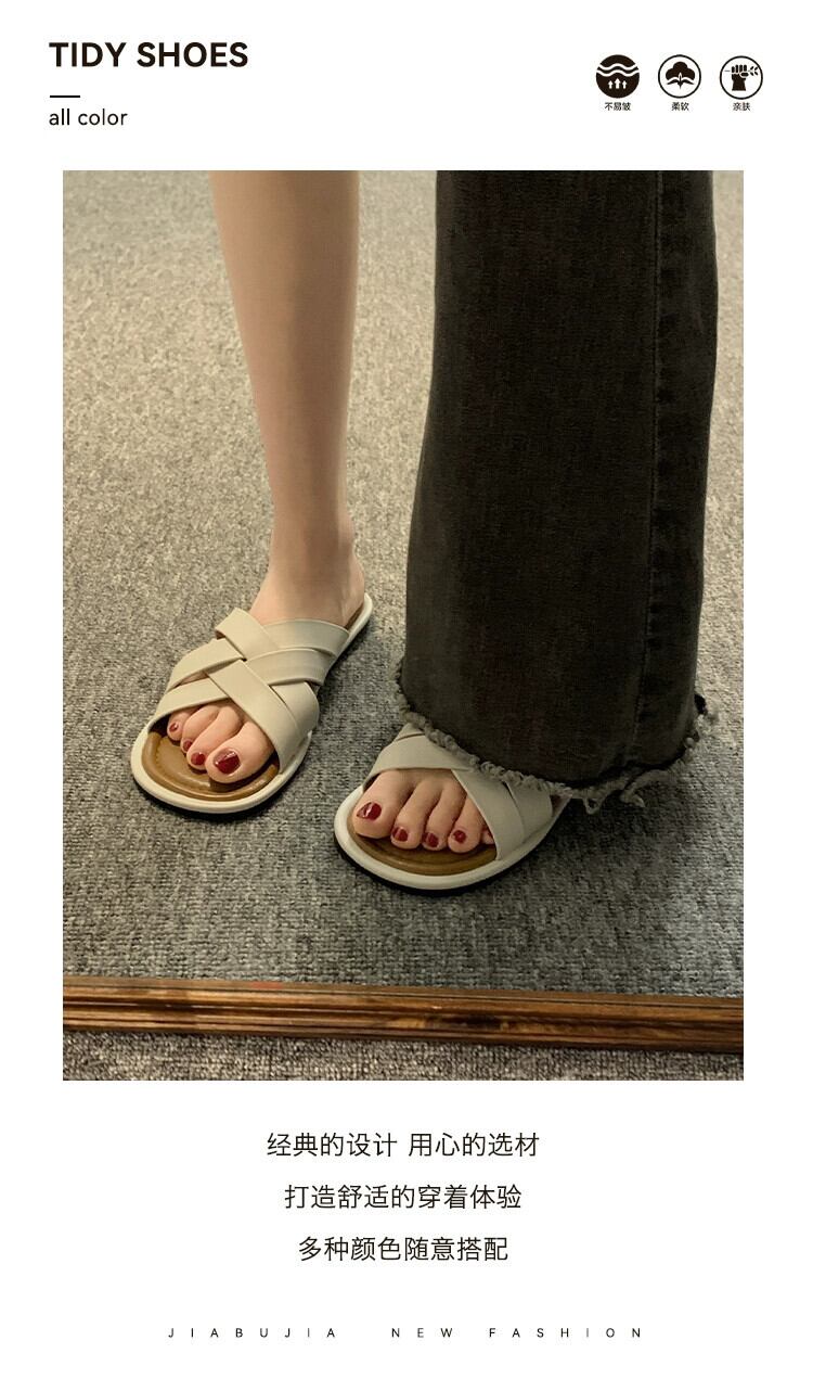 アウタースリッパレディース夏 2023 新しいネットレッドスーパーオールマッチレトロ織りフラット comtable ビーチサンダルトレンディな ミュール 靴 シューズ サマー 夏物 jxjxf80812524339