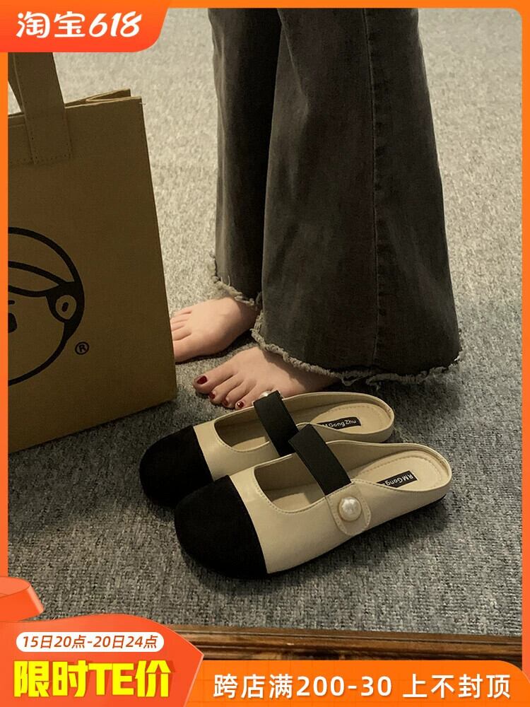 セミスリッパ女性のアウターウェア 2023 夏の新しいファッションオールマッチ優しいレトロな平底西洋スタイルの comtable サンダルとスリッパ ミュール 靴 シューズ サマー 夏物 jxjxf75918021985