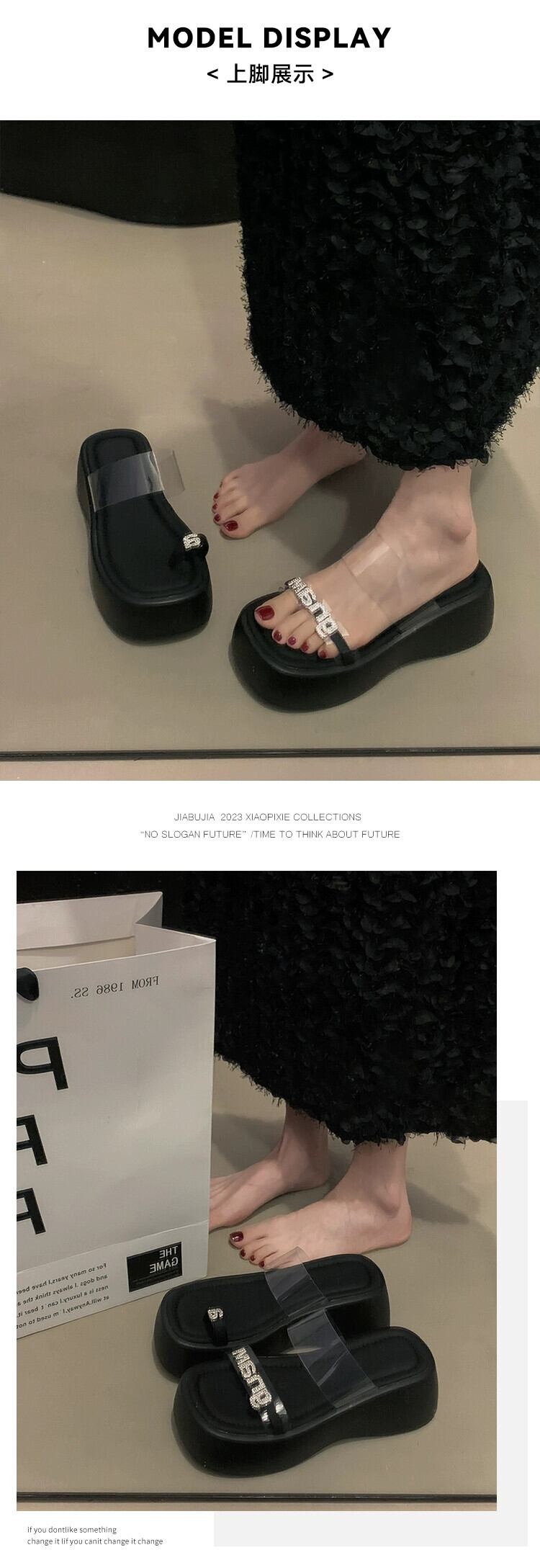 スリッパレディースアウター 2023 夏の新ファッションラインストーン小さなマフィン厚底アインスタイルサンダルとスリッパトレンド ミュール 靴 シューズ サマー 夏物 jxjxf77024835999