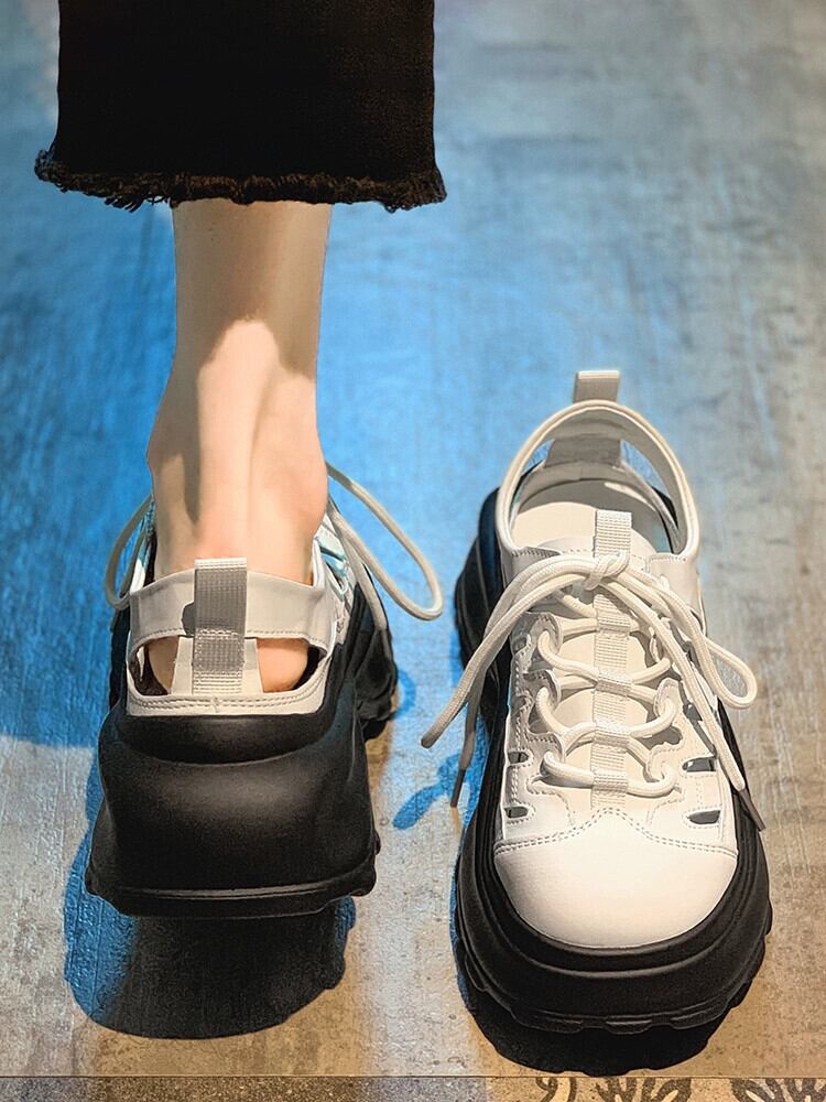 太いヒールスポーツサンダル女性の 2023 夏の新ファッション通気性学生中空強化小さなカジュアルシューズ 靴 サマー 夏物 jxjxf31634203028