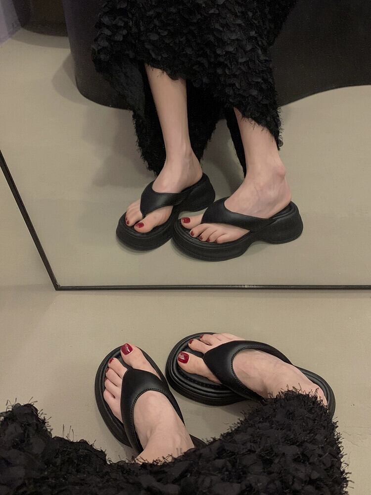 太いヒールのビーチサンダルの女性のアウターウェア 2023 夏の新しいファッションシンプルなレトロな高められた快適なビーチサンダル 靴 シューズ サマー 夏物 jxjxf98587446217