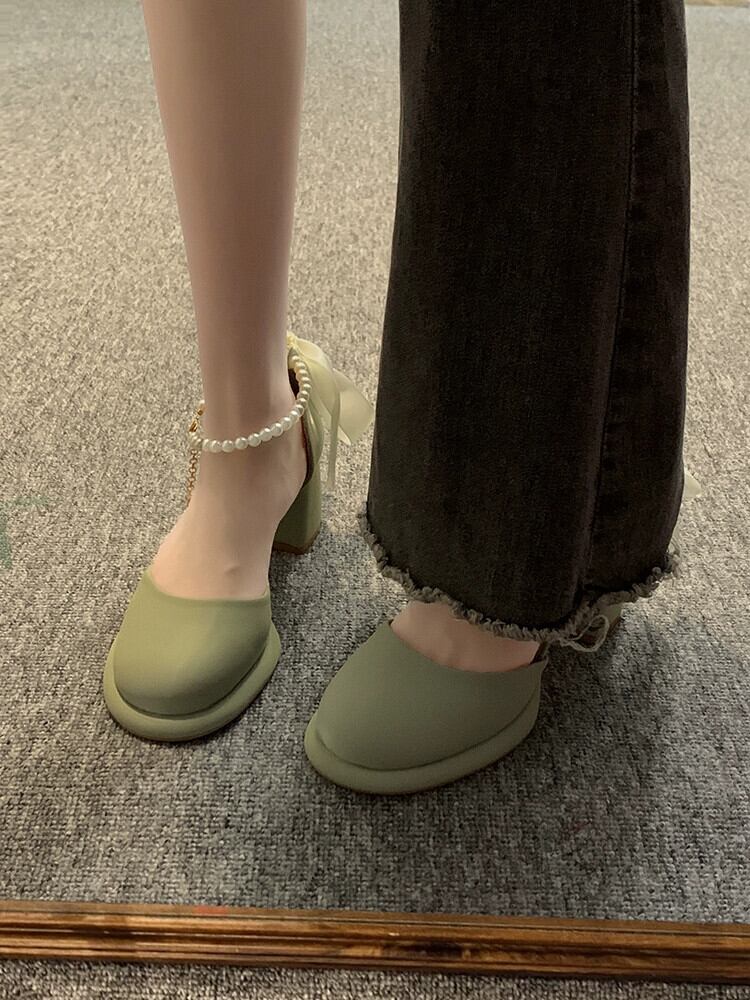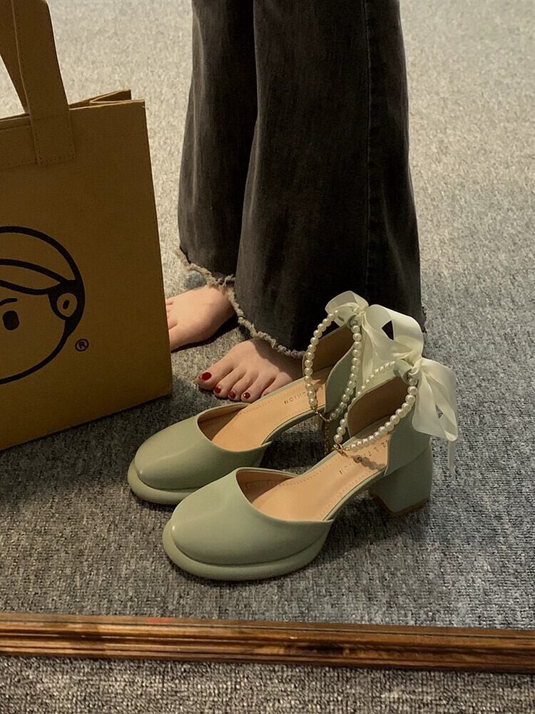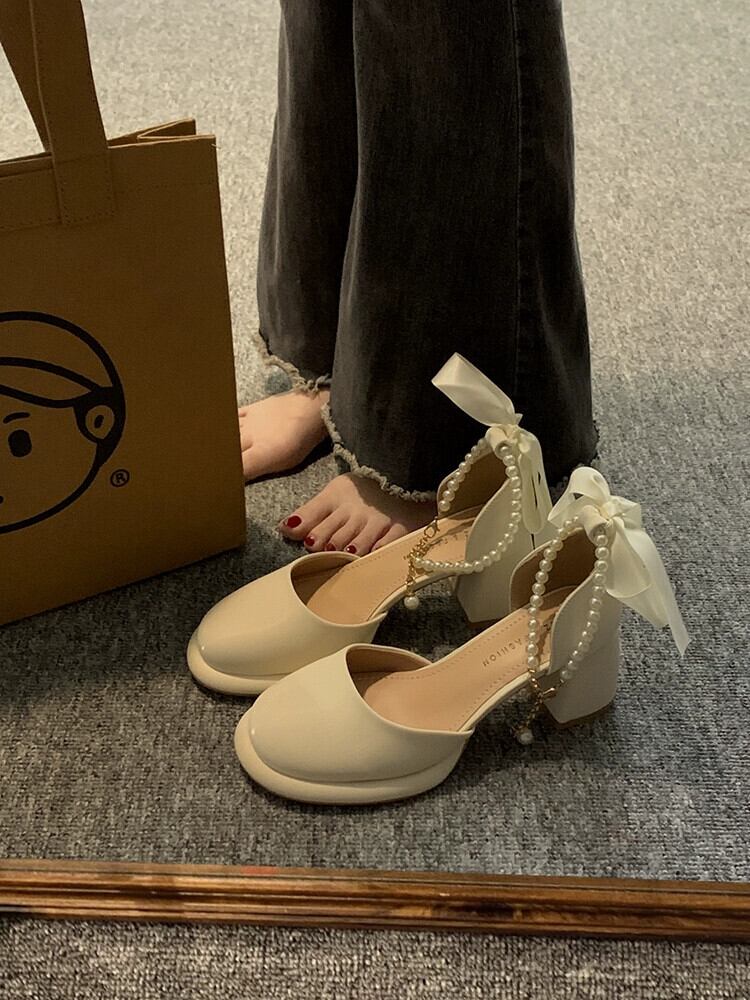 スタイルシングルシューズ女性の 2023 夏の新フレンチスタイルパールリボンファッション eign スタイル美しいメリージェーンハイヒール 靴 サマー 夏物 真珠 jxjxf42826250386