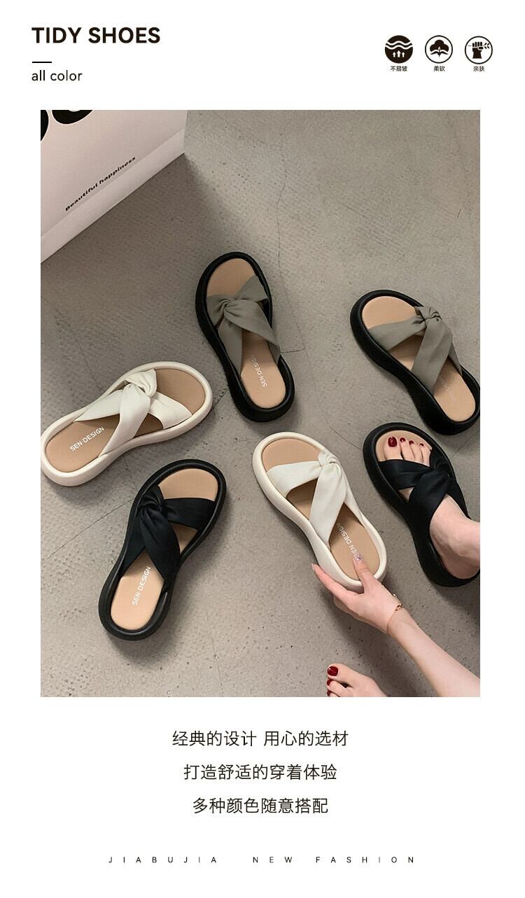 厚底一言スリッパ 2023 夏の新作ファッション シンプル フレンチ レトロ カジュアル サンダル スリッパ ミュール 靴 シューズ サマー 夏物 jxjxf65528464866